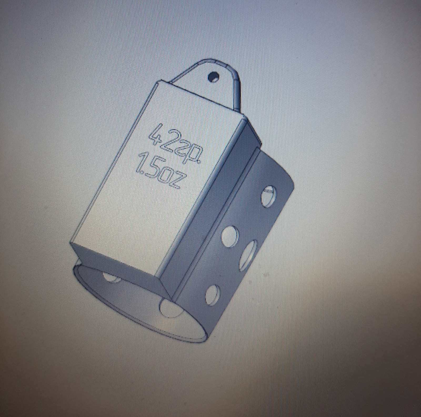Mẫu lồng câu cá (Feeder) nặng 42g (1.5 oz) tự thiết kế, có khoang chứa chì bên trong lên tới 56g (2 oz). Sử dụng nhựa PETG, hỗ trợ in ở dưới và cần tạm dừng ở layer 206 để chèn chì.