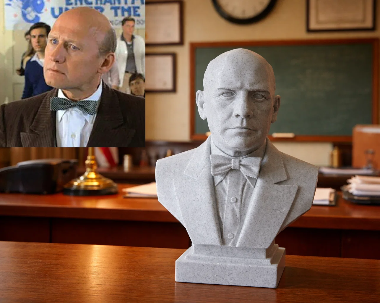 Bức tượng bán thân này tái hiện James Stewart Tolkan, một nam diễn viên người Mỹ đầy ấn tượng, nổi danh qua những vai diễn có uy quyền trong các bộ phim thập niên 80 và 90. Ông đặc biệt nổi tiếng với vai diễn thầy hiệu trưởng Gerald Strickland nghiêm khắc trong phim Back to the Future — một nhân vật đã trở thành huyền thoại nhờ tính cách cứng rắn và những câu thoại để đời.