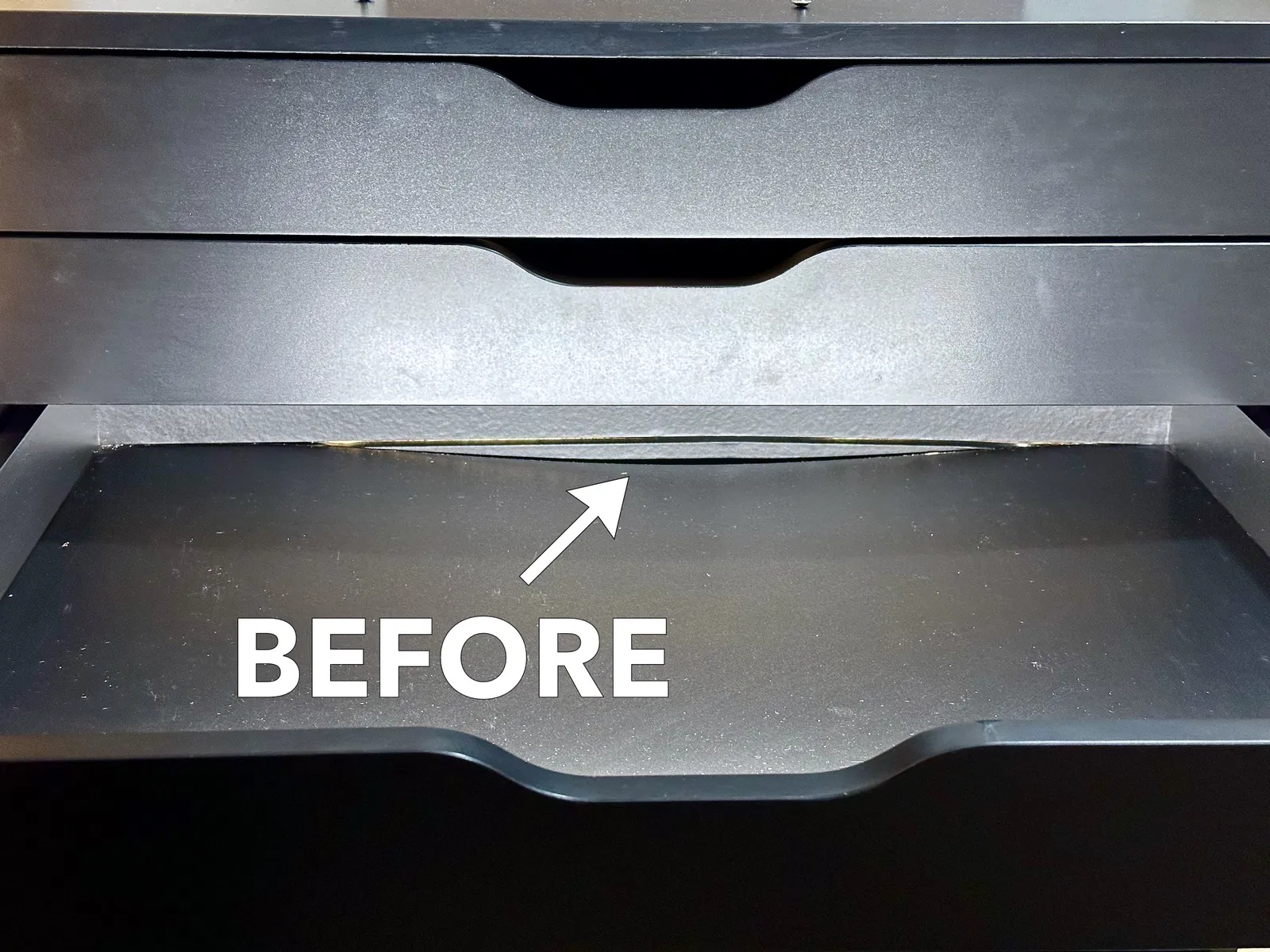 Mình mới mua lại một chiếc tủ IKEA ALEX “Drawer unit on castors” đã qua sử dụng. Nhìn bên ngoài thì tủ vẫn còn ngon, nhưng mấy tấm đáy ngăn kéo do bị để đồ nặng quá nên bắt đầu bị võng và có dấu hiệu sắp hỏng.
