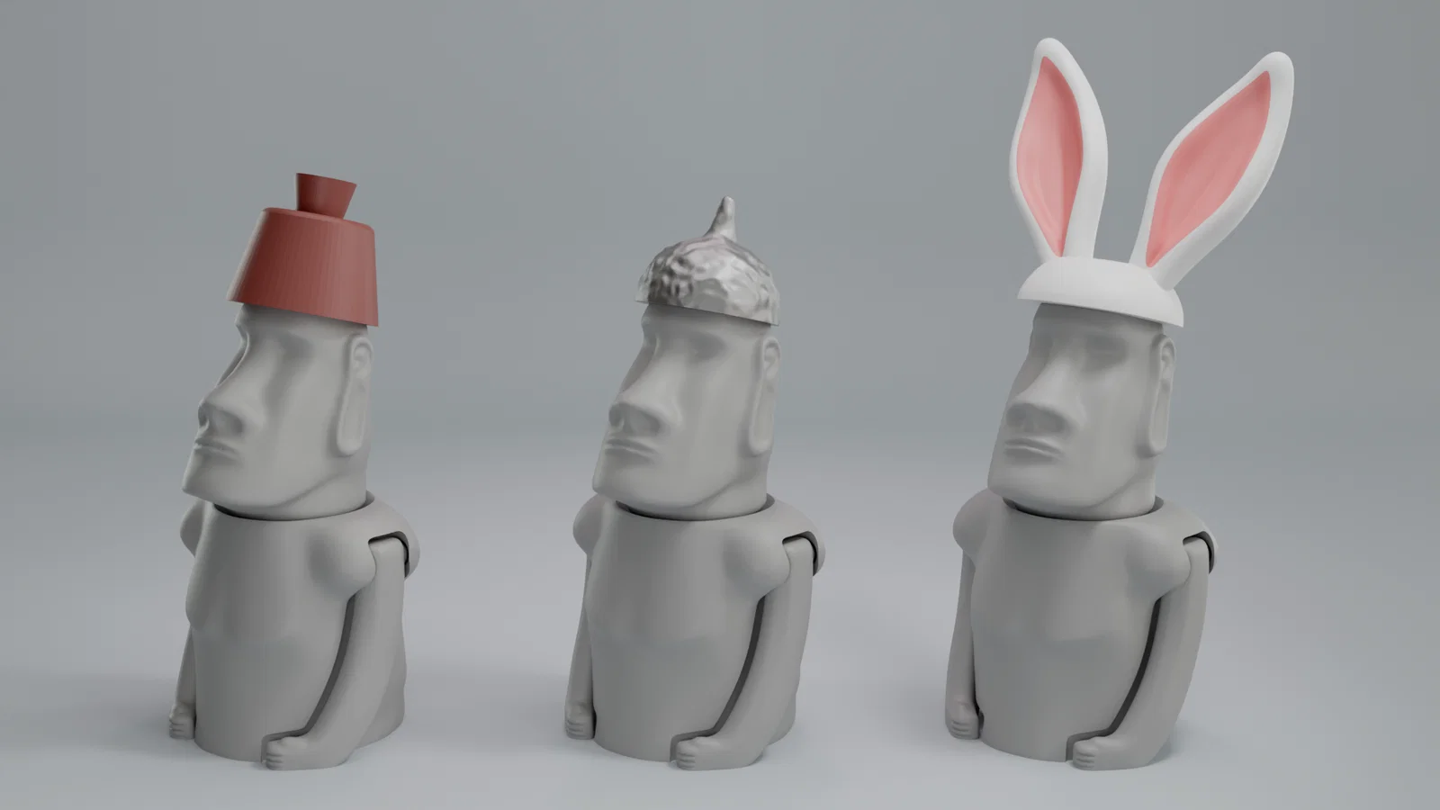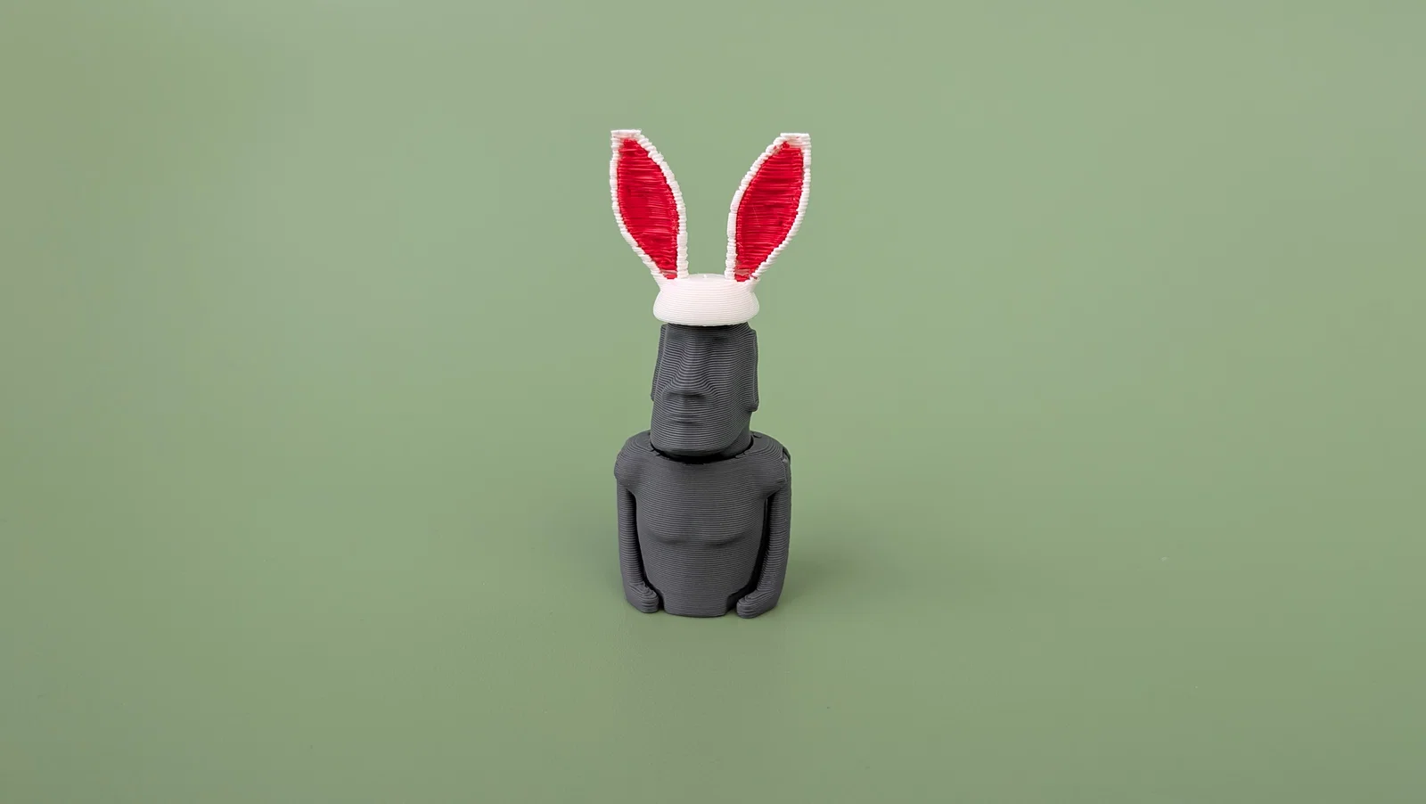 Tượng Đảo Phục Sinh 🗿 với đầy đủ khớp nối, vẻ mặt hơi ngơ ngác và vẫn chưa hiểu tại sao mình lại đang đeo tai thỏ… Một mô hình in-place cực thú vị để trang trí và giải trí cho dịp Lễ Phục Sinh này.