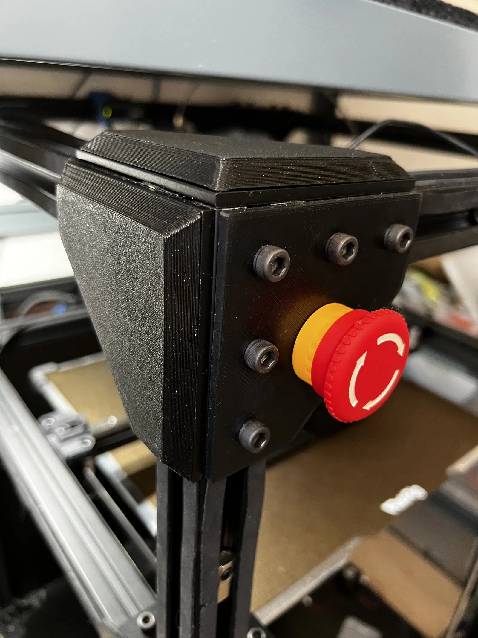 • Tấm che nút E-stop được thiết kế riêng cho khung đỡ E-stop của tui nên sẽ không vừa với tấm góc tiêu chuẩn.