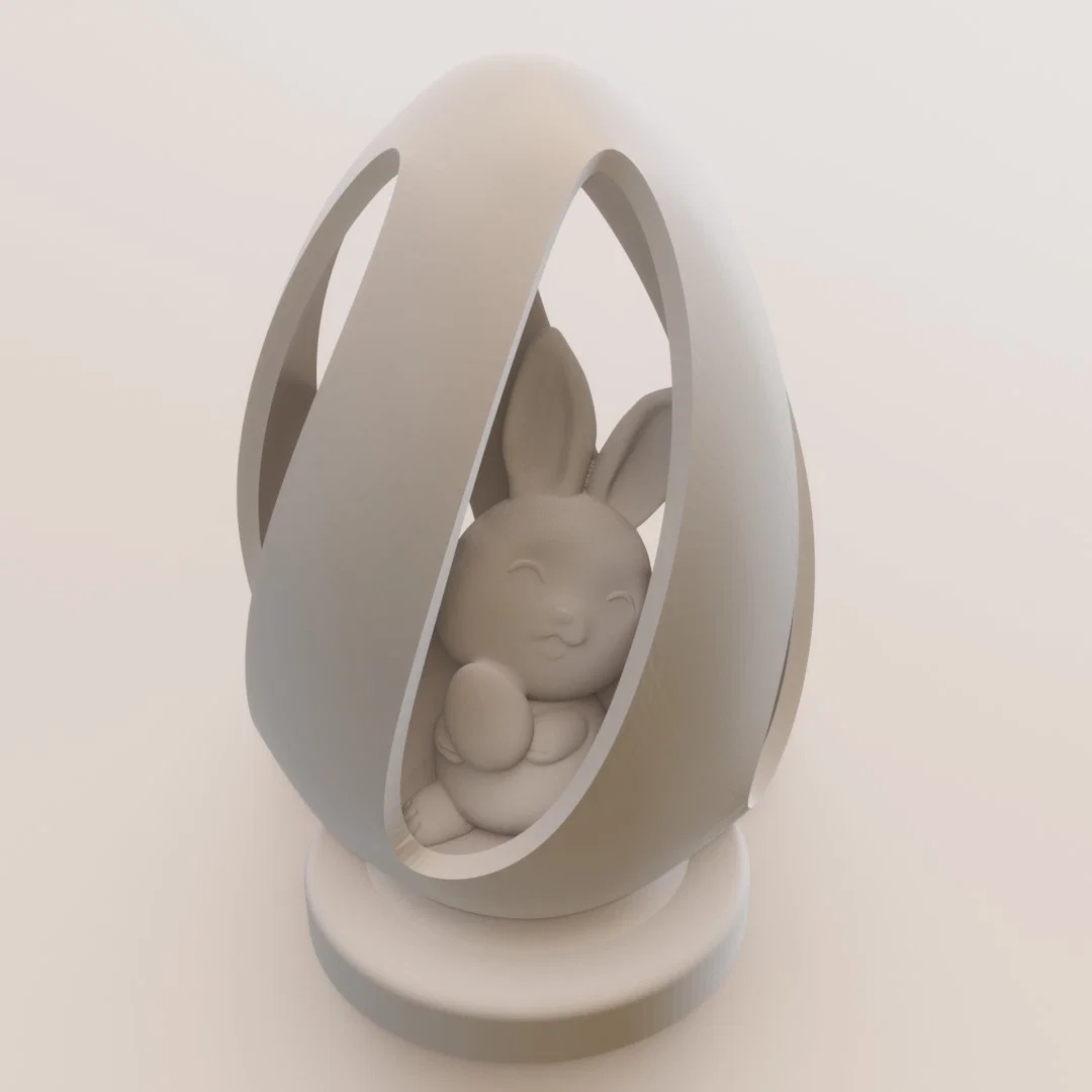 Chào các bạn đam mê in 3D, sắp đến dịp lễ Phục sinh rồi, nếu bạn đang tìm kiếm một món quà trang trí vừa tinh tế vừa mang không khí lễ hội thì mô hình "Easter egg with bunny" (trứng Phục sinh với chú thỏ) này chính là lựa chọn tuyệt vời. Đây là một món đồ trang trí nhỏ xinh, cực kỳ phù hợp để đặt trên bàn làm việc, kệ sách hoặc làm quà tặng bất ngờ cho các bé. Thiết kế này bao gồm một chú thỏ nhỏ đang mỉm cười, nằm gọn bên trong lớp vỏ trứng được cắt khoét cách điệu, tạo cảm giác vô cùng đáng yêu và sống động.