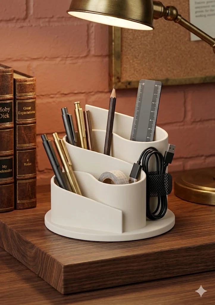 Khay đựng đồ để bàn với thiết kế dạng sóng hữu cơ đầy tinh tế, mang phong cách tối giản và hiện đại. Mô hình cực kỳ dễ in, không cần hỗ trợ (no support), rất phù hợp để trang trí góc làm việc bằng nhựa Wood PLA cho cảm giác tự nhiên.
