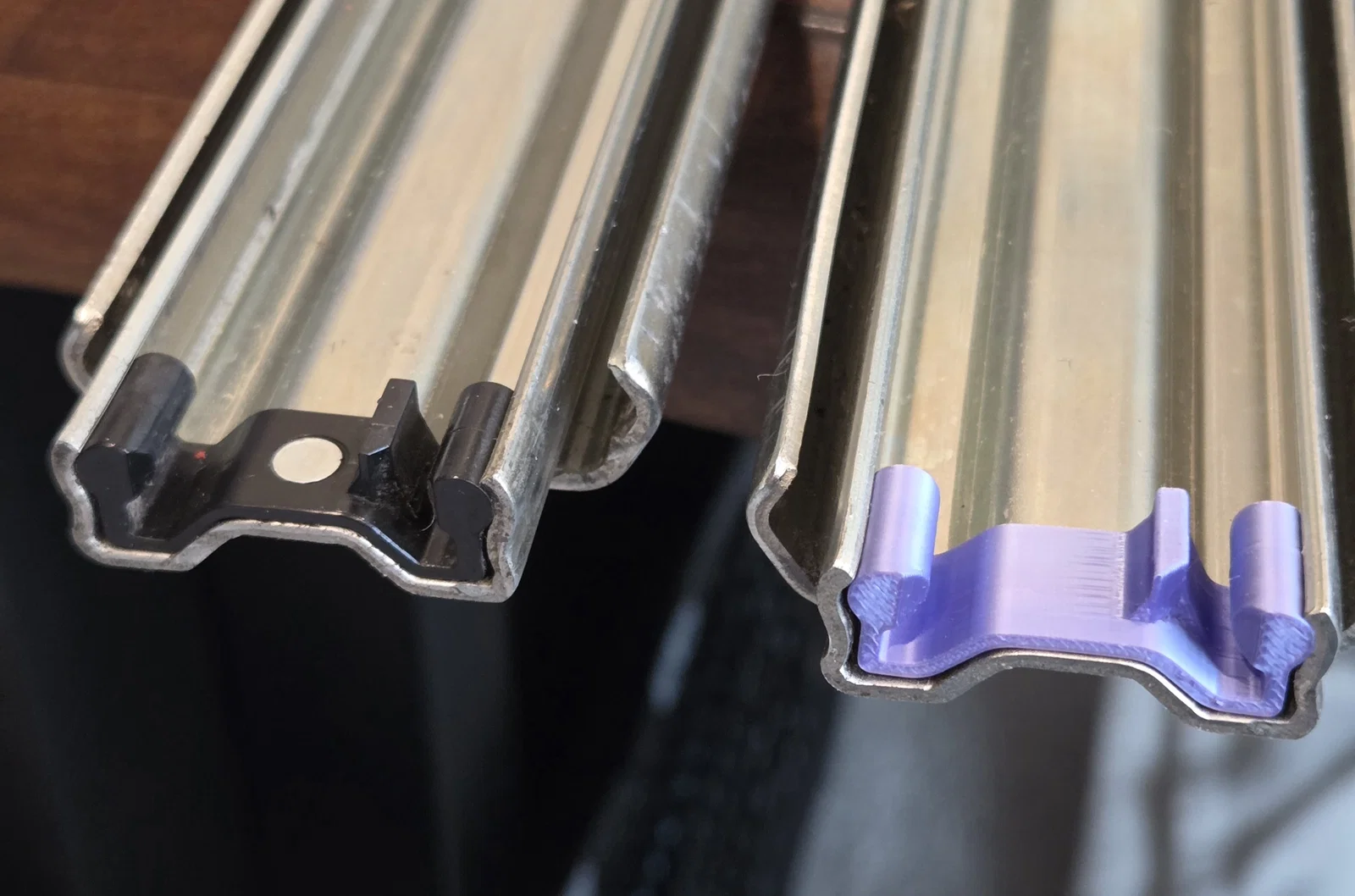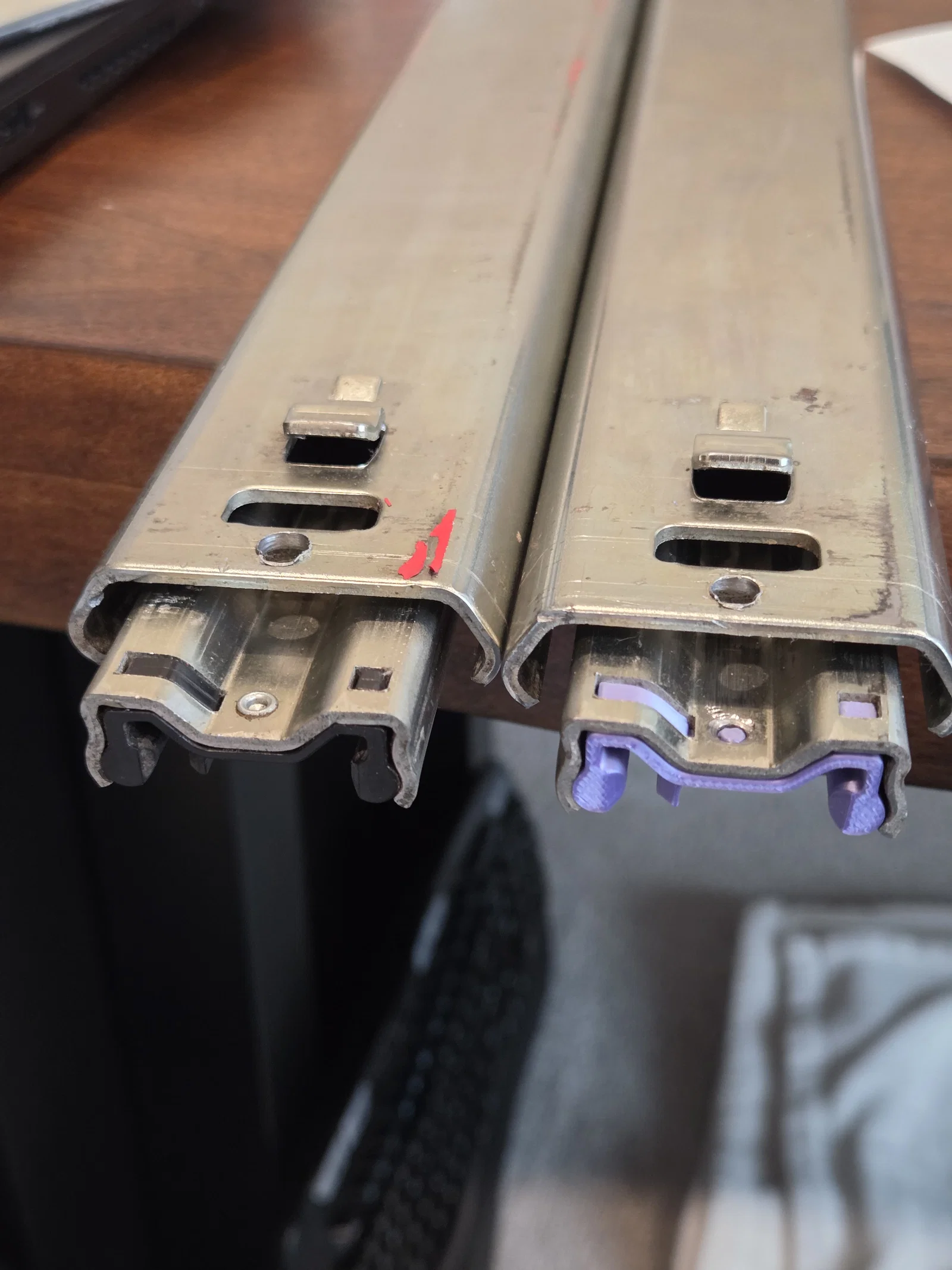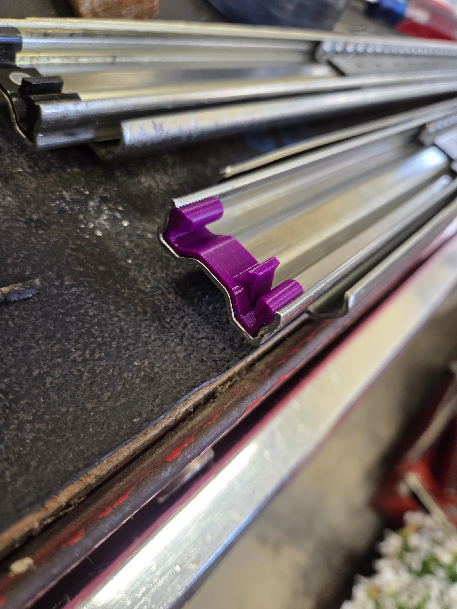 Mình chưa có dịp test món này trong thời gian dài, nhưng khi lắp vào thì nó khớp rất chắc và ngăn kéo hoạt động bình thường. Mình đã thêm các chi tiết để khớp vào rãnh trên thanh trượt, bao gồm cả một cái chốt thay thế cho vị trí tán rivet zin của hãng. Mình in bằng nhựa PETG, nhưng nếu bác nào muốn bền hơn nữa thì mình nghĩ dùng ASA, PC hoặc Nylon sẽ là lựa chọn tối ưu nhất.