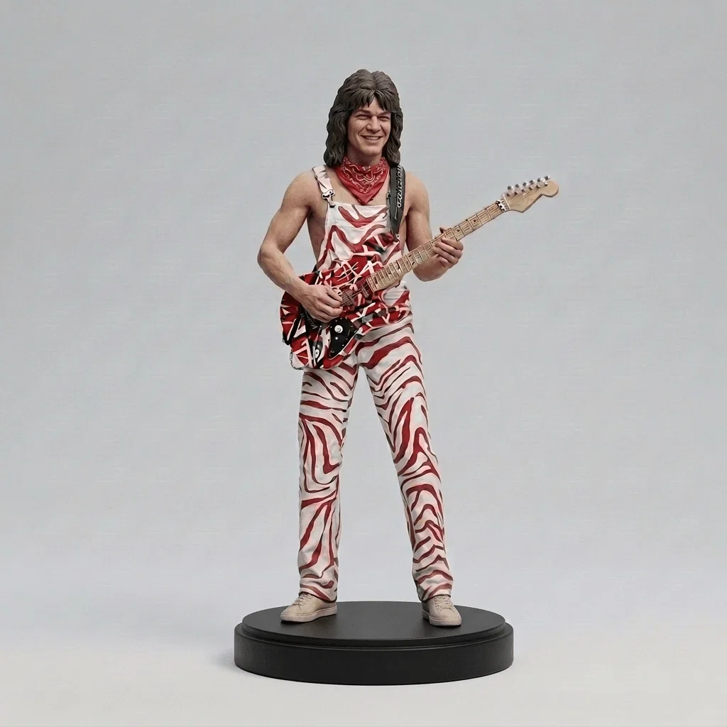 Nếu anh em là tín đồ của dòng nhạc Rock và yêu mến những ngón đàn điêu luyện của Eddie Van Halen, thì mẫu mô hình 3D này chắc chắn là thứ không thể thiếu trong bộ sưu tập của mình. Sản phẩm tái hiện lại hình ảnh biểu tượng của huyền thoại guitar với phong cách trình diễn máu lửa, từ kiểu tóc đặc trưng cho đến bộ trang phục họa tiết sọc vằn nổi tiếng đã gắn liền với tên tuổi của ông. Đây là một tác phẩm để bàn cực kỳ bắt mắt, giúp không gian làm việc hay góc giải trí của anh em trở nên cá tính và đậm chất nghệ sĩ hơn bao giờ hết.