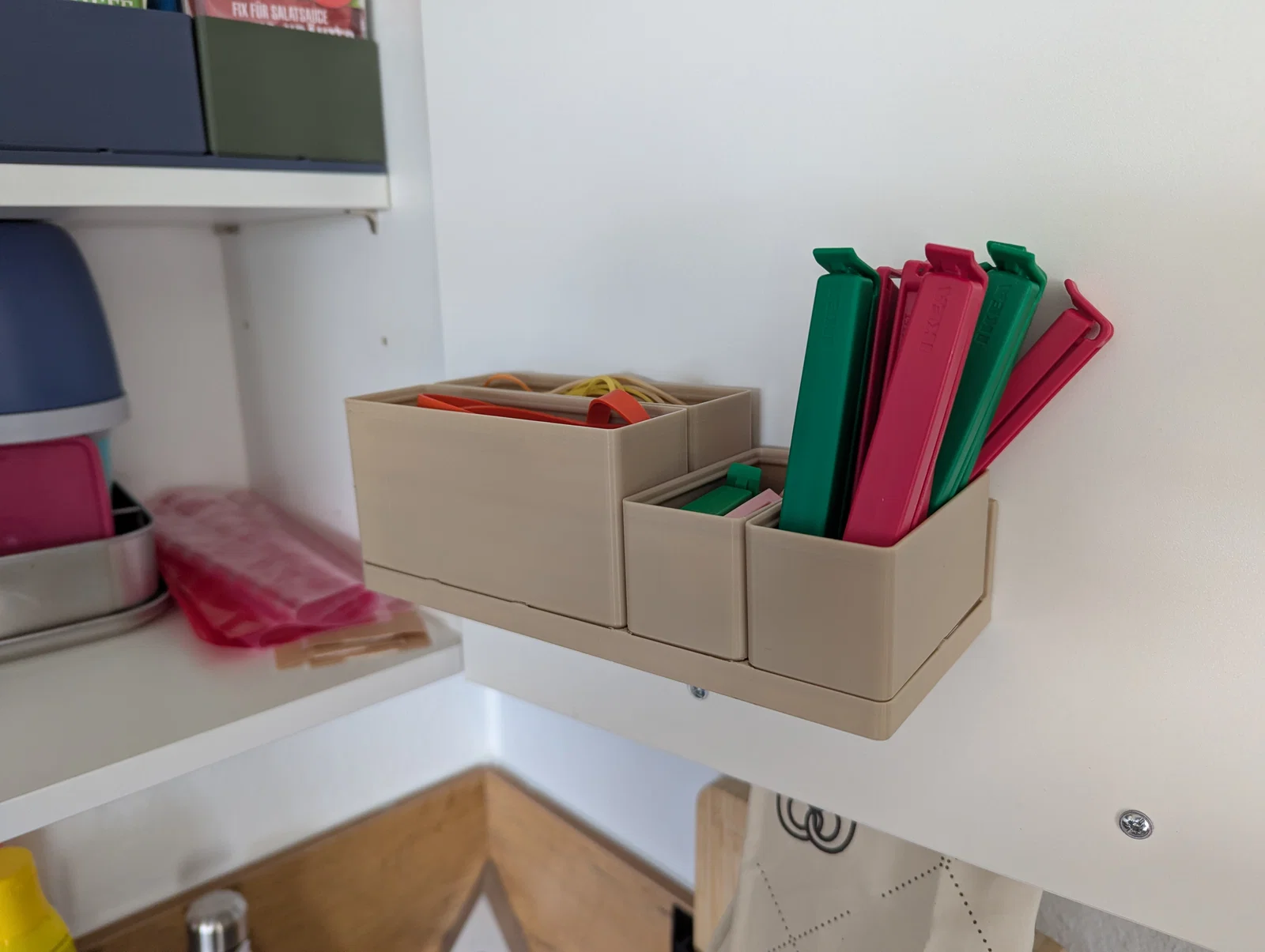 Sản phẩm này cho phép bạn gắn các hộp chứa Gridfinity lên tường một cách chắc chắn nhờ vào bề mặt dính. Với kích thước 5x2, nó đủ nhỏ gọn để lắp đặt vào nhiều vị trí khác nhau trong nhà, từ bếp, nhà kho cho đến góc làm việc. Bạn chỉ cần in tấm đế ra, dán nó vào vị trí mong muốn, và ngay lập tức có thể sắp xếp các dụng cụ nhỏ như kẹp túi thực phẩm, dây thun, hoặc các linh kiện nhỏ gọn khác một cách ngăn nắp.