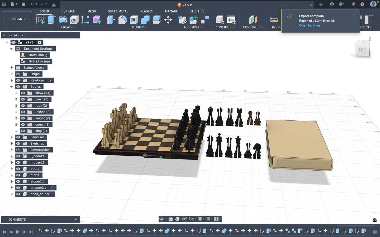 Một bộ cờ vua 16x16 được thiết kế tinh tế dưới dạng một cuốn sách. Các quân cờ có khả năng lắp ghép gọn gàng, tiết kiệm diện tích. Tệp bao gồm hướng dẫn in chi tiết cho máy Bambu Lab và số lượng quân cờ cần thiết để hoàn thiện sản phẩm.