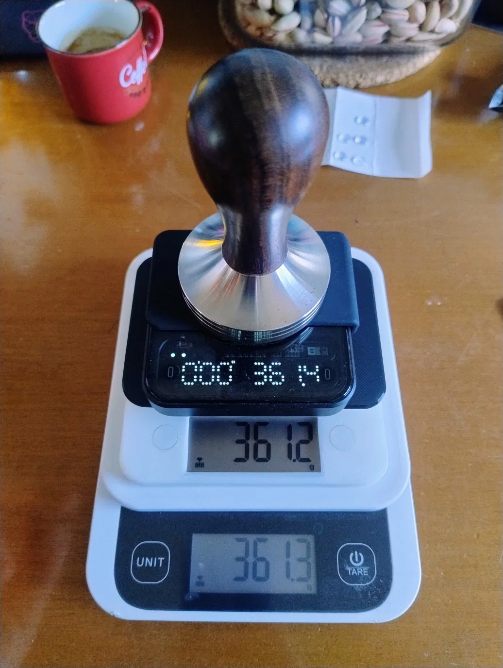 Phiên bản thu nhỏ của mẫu cân bluetooth phổ biến, thiết kế riêng để đặt vừa khít trên khay hứng nước của máy pha cà phê espresso như Gaggia Classic. Cấu trúc nhỏ gọn, tối ưu không gian nhưng cần chút khéo tay khi lắp ráp và thay pin.
