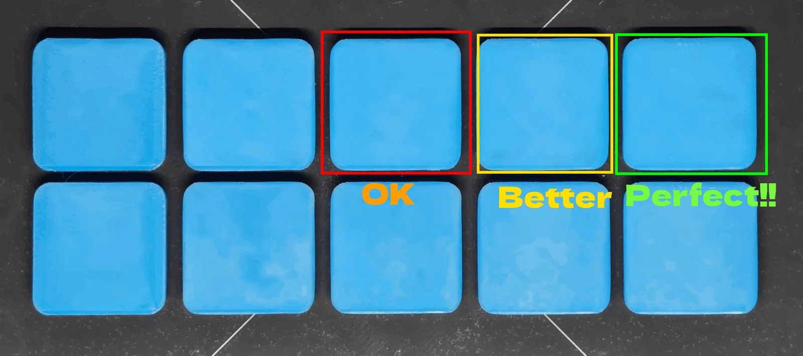 Mình sẽ chọn mảnh này làm cấu hình tối ưu nhất cho loại nhựa và máy in của mình. Nếu bạn thấy có nhiều mảnh nhìn ổn, hãy dùng tay sờ thử bề mặt của từng mảnh.