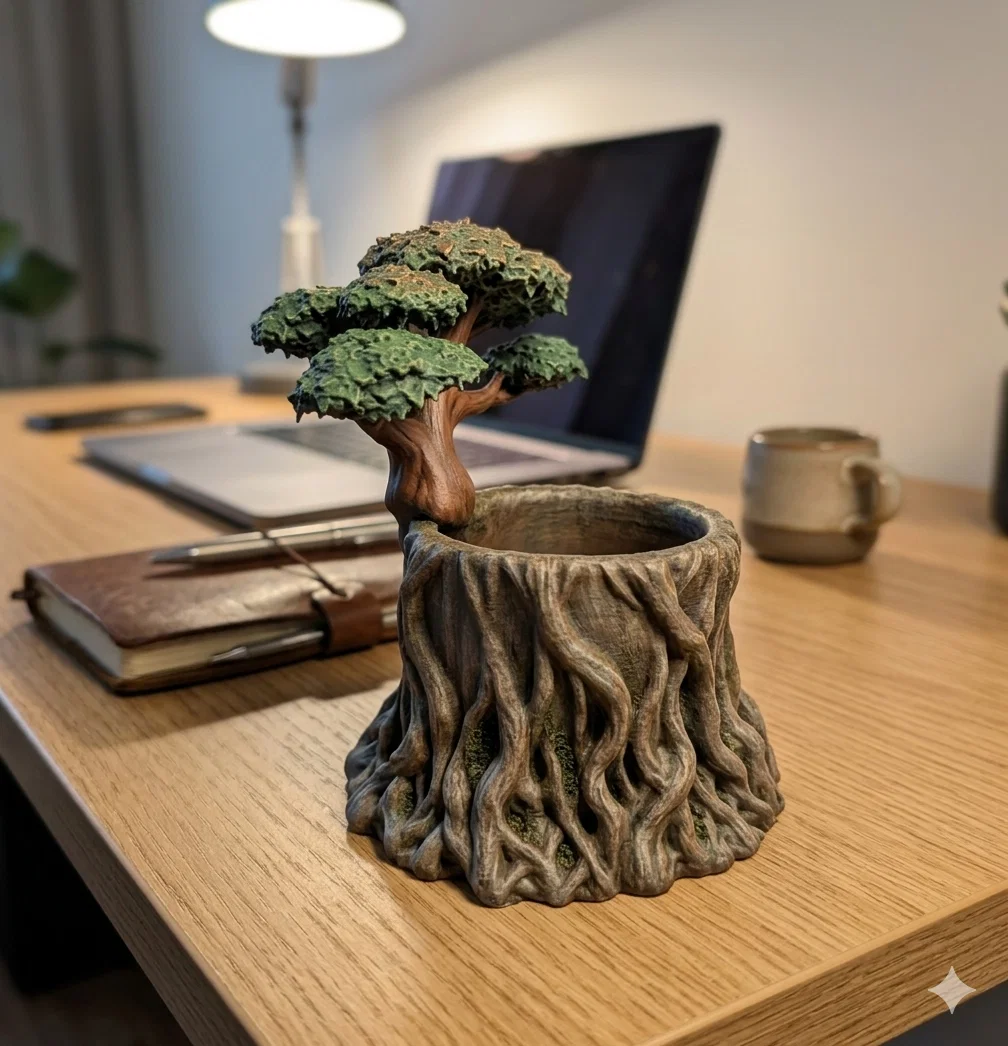 Thêm một phiên bản ống cắm bút bonsai mang phong cách tự nhiên cho bàn làm việc. Mô hình cần sử dụng support, nhưng rất dễ tháo rời, giúp bạn hoàn thiện sản phẩm một cách nhanh chóng và đẹp mắt.