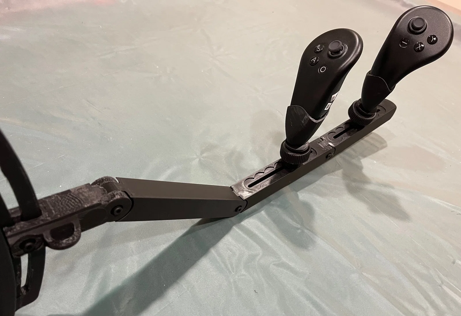 Mình đã muốn tìm một giải pháp mà trên thị trường hiện tại chỉ có duy nhất một lựa chọn, nhưng nó lại quá đắt đỏ đối với mình. Mình có sử dụng một phần chi tiết kê vai từ mẫu BMKVR - Marksman nhưng không nhớ rõ đã tải từ trang nào. Tuy nhiên, phần "nòng súng" và bộ phận giữ tay cầm (controller) là hoàn toàn do mình tự thiết kế.