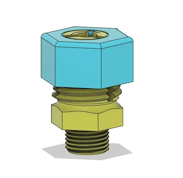 Đây là một bộ kết nối ống PTFE, được thiết kế để tránh sự di chuyển của ống PTFE do sự thu hồi. Một vấn đề lớn với ống PTFE trong đầu nóng của tôi là sự hư hại do lưỡi kim loại trong bộ kết nối gây ra. Sau một thời gian, ống bị hư hại và di chuyển một chút, điều này có thể gây tắc nghẽn. Tôi chưa kiểm tra khả năng chịu nhiệt cho đến thời điểm này, và đang tự hỏi liệu tôi có thể có thiết kế giống như vậy với các bộ phận kim loại hay không.