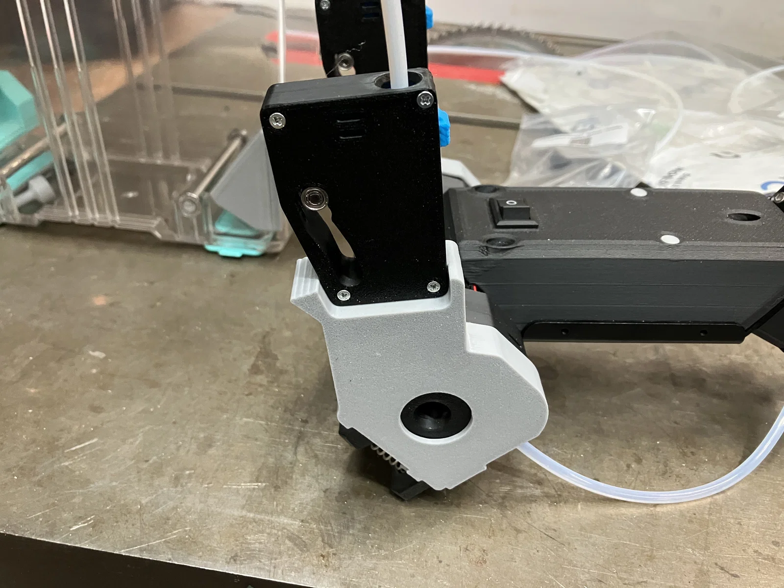 Mình rất thích con máy S1 cũng như bộ cutter này, nhưng mình không khoái việc chỉ dùng ống PTFE để đỡ nó. Mình chỉ có một chiếc S1 và mấy cái ngàm này hoạt động rất ổn. Tuy nhiên, mọi người lưu ý là cutter lắp vào ngàm khá khít, mình cũng không chắc là sau này tháo ra có dễ dàng không. Với mình thì lắp một lần là xong nên không vấn đề gì. Ngàm này được thiết kế theo kiểu ép chặt (interference fit) lên nắp máy, nên có thể bạn sẽ cần điều chỉnh thông số co ngót của nhựa trong phần mềm cắt lớp (slicer). Mình in bằng nhựa ABS và thường để thông số co ngót là 100.45%. Mình không dùng ống Bowden giữa cutter và máy S1, nhưng mình nghĩ cũng không sao vì sợi nhựa vẫn đi qua trơn tru mà không gặp trở ngại nào. Mình có kèm file STEP để các bạn dễ dàng chỉnh sửa nếu có phần mềm tương ứng.