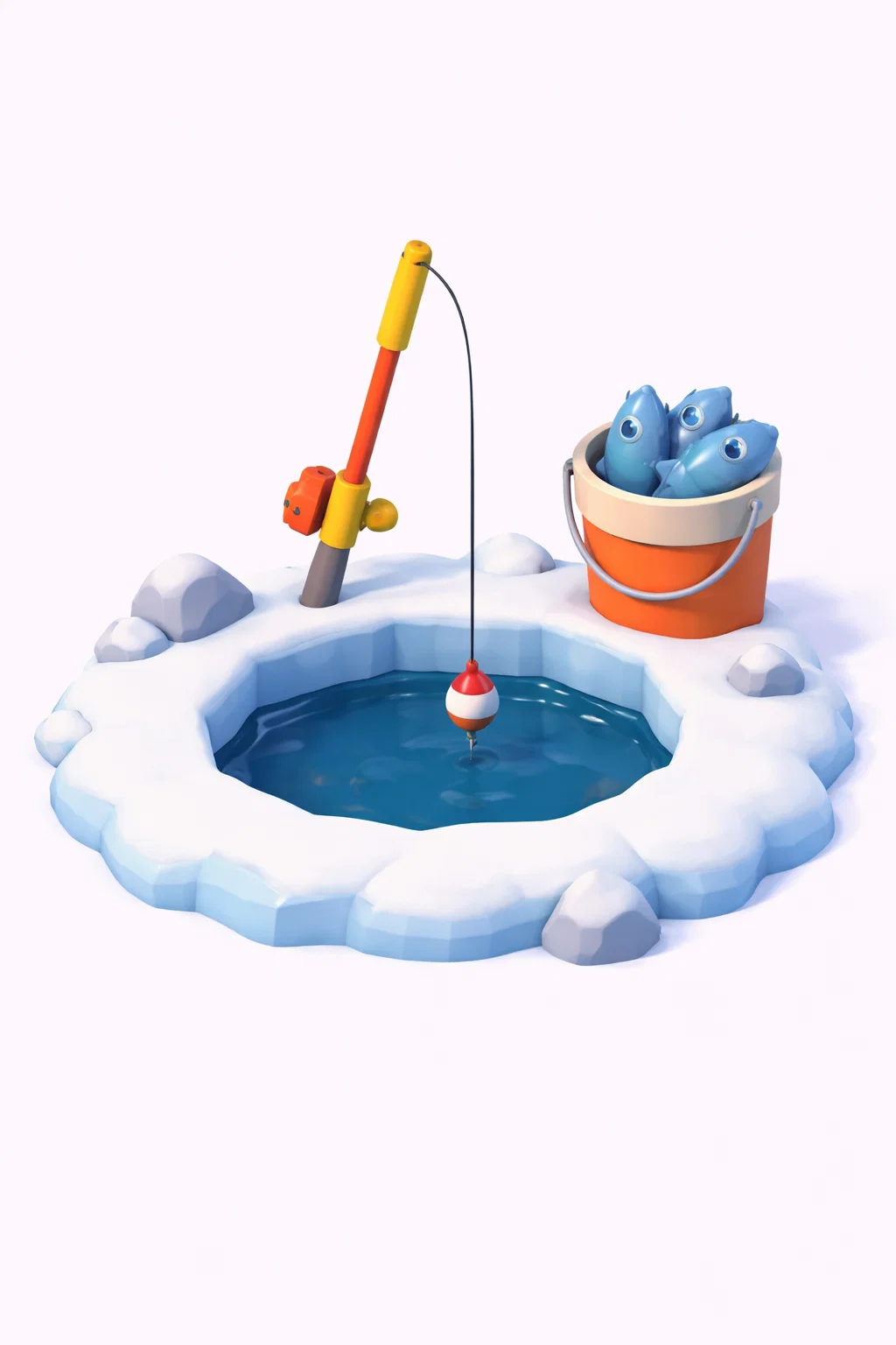 Mô hình 3D Hố câu cá trên băng phong cách Low Poly độc đáo