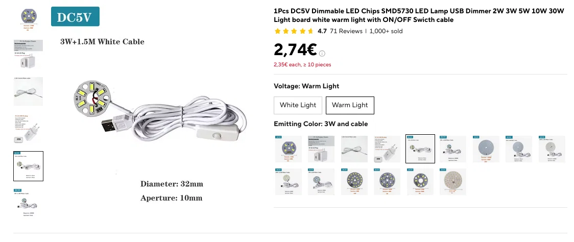 • Một tấm LED 3W kèm công tắc được kết nối với mạch BMS để cấp nguồn. (Mình đã cắt bỏ đầu cắm USB để hàn trực tiếp tấm LED vào BMS, đồng thời tháo lớp vỏ nhựa của công tắc để lắp vừa vào bên trong đèn.)