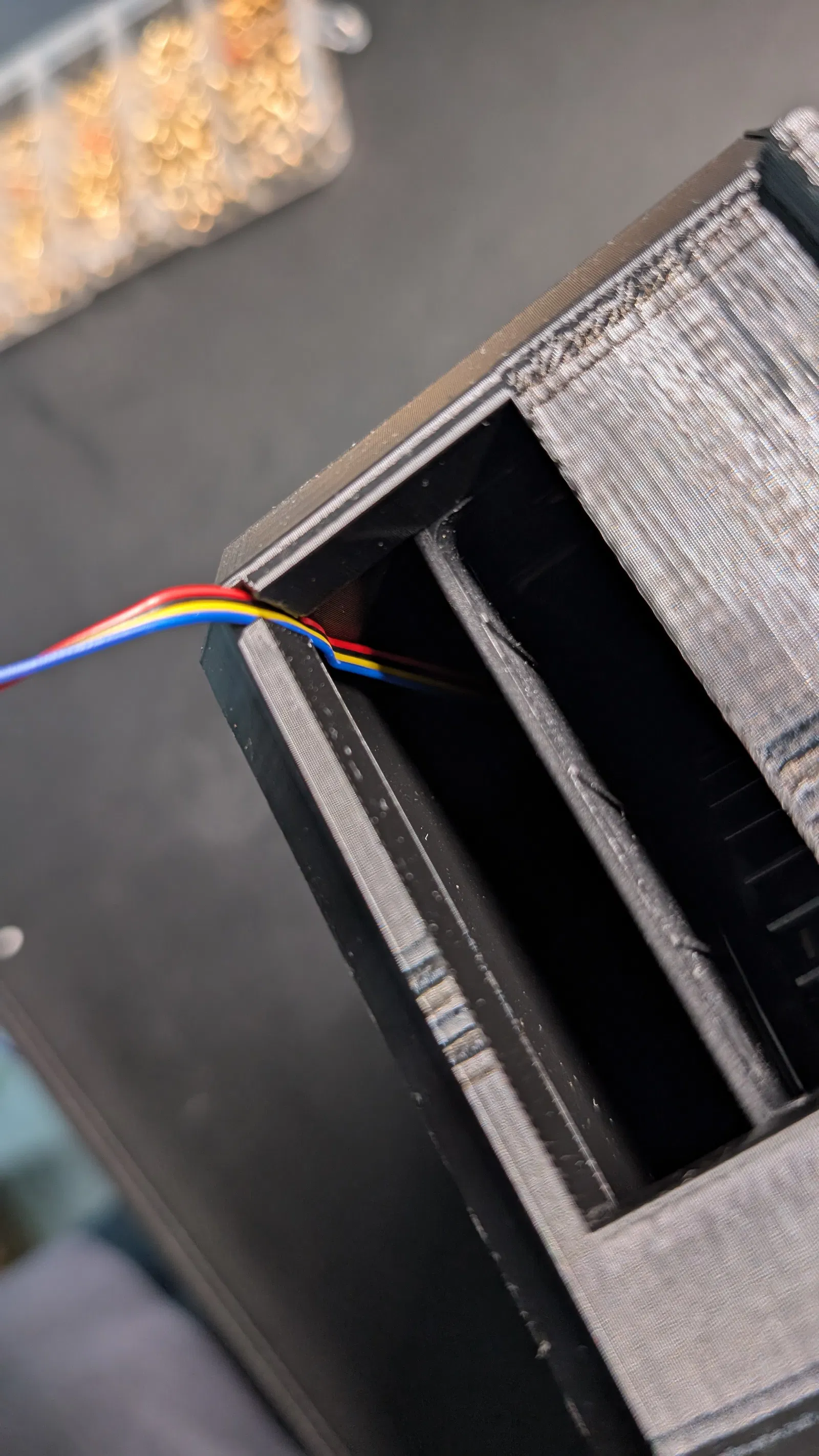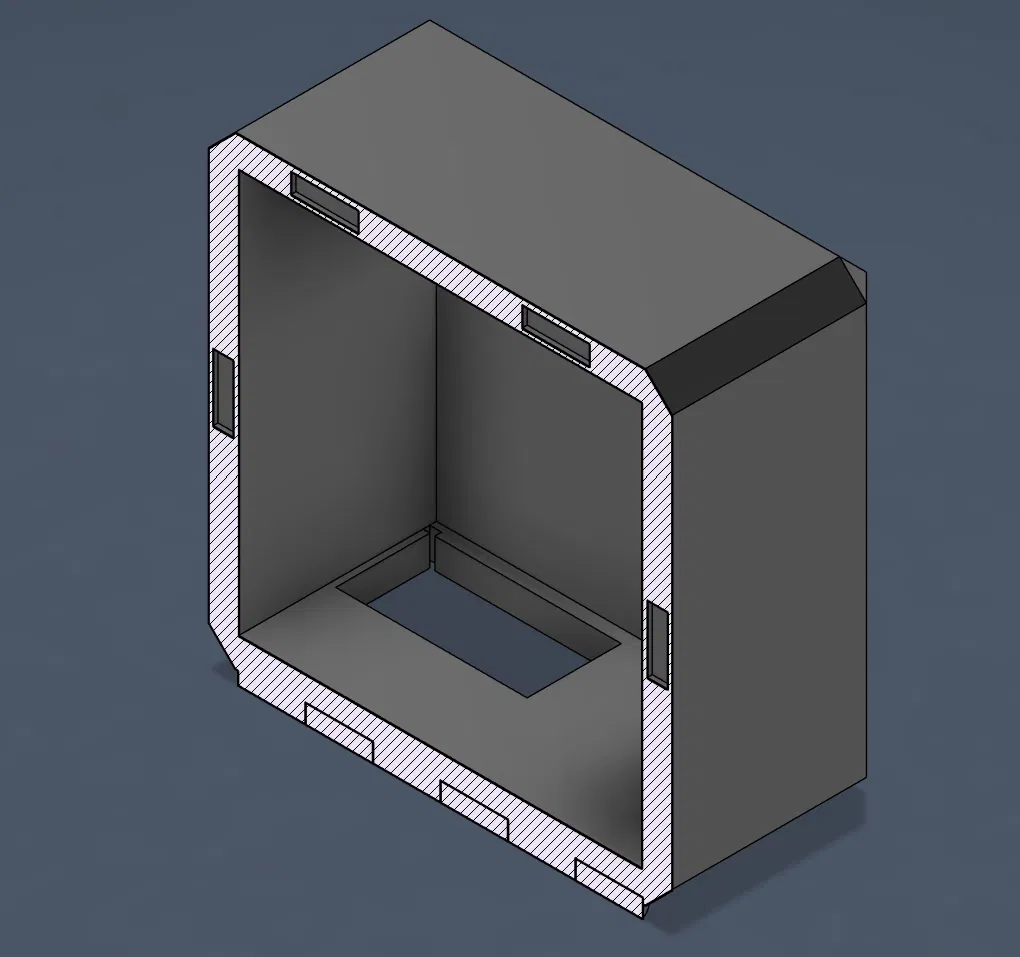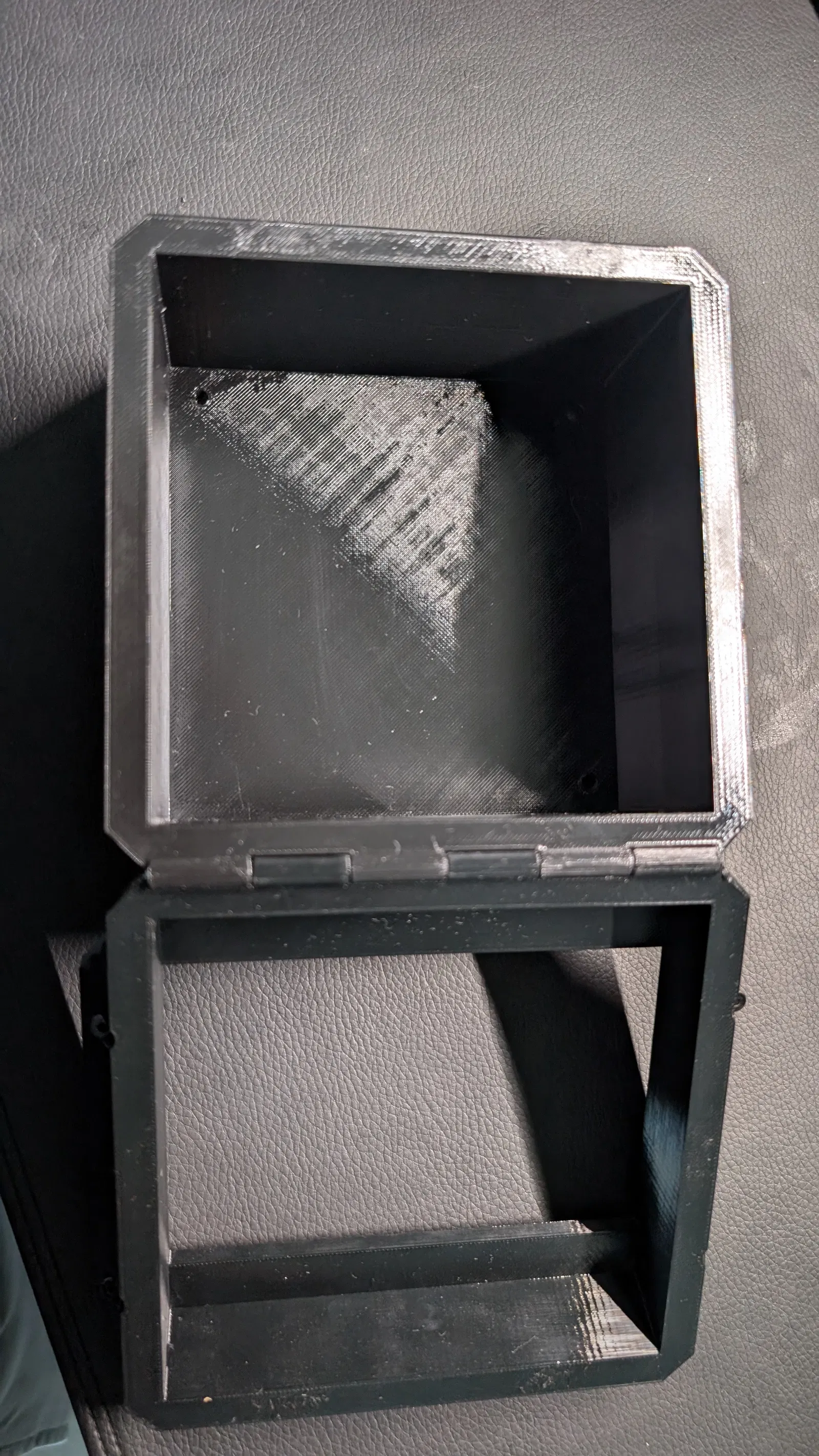Mình thiết kế phần này để bạn có thể mở ra dễ dàng nếu muốn tăng lưu lượng gió, tuy nhiên có vẻ như chỉ cần lắp mỗi bộ lọc thôi là gió đã lưu thông rất tốt rồi. Ngoài ra, phần bản lề cũng được thiết kế để sử dụng chính đoạn filament 1.75mm làm chốt xoay.