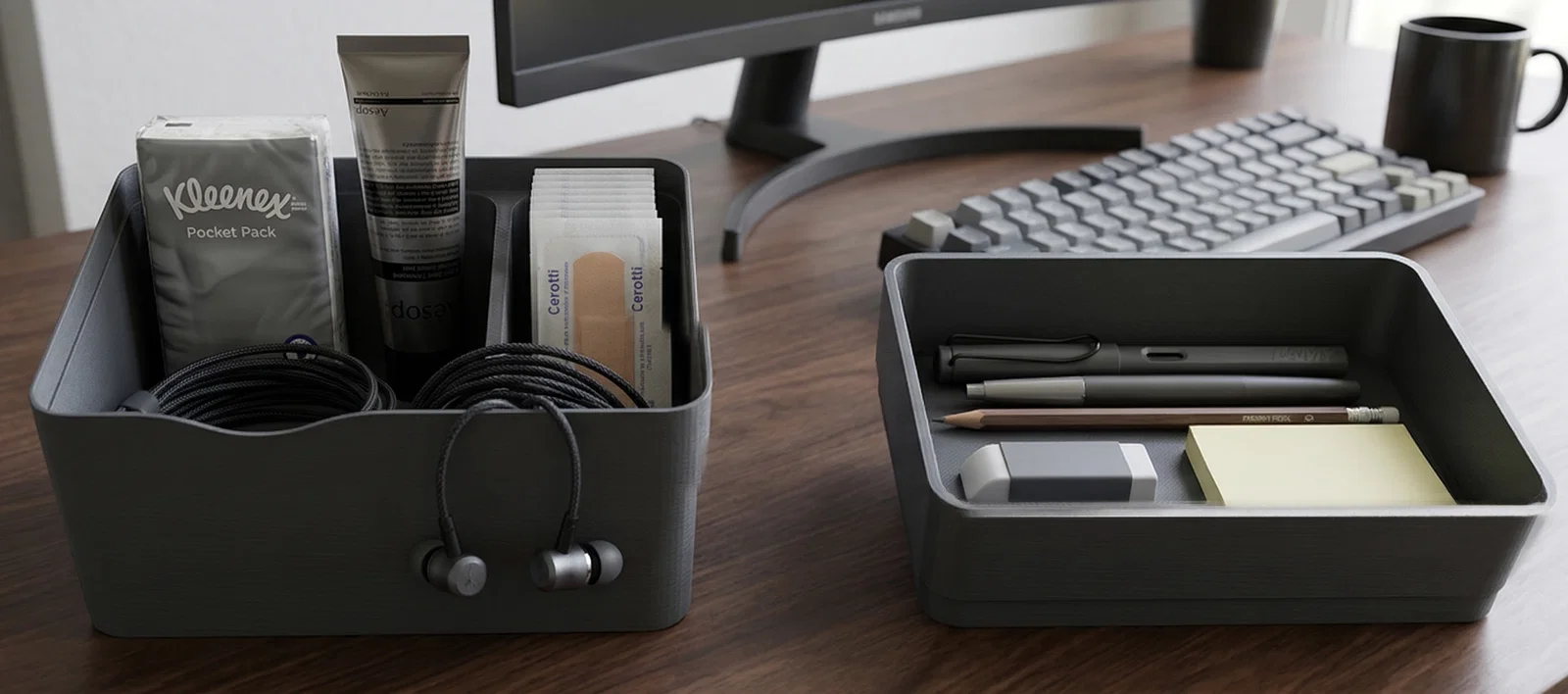 Bộ khay Desk Organizer gồm 2 tầng có thể chồng khít lên nhau. Thiết kế tiện lợi với vách ngăn thông minh và bề mặt nhám độc đáo nhờ tính năng Fuzzy Skin. Giải pháp gọn gàng, tinh tế giúp góc làm việc của bạn trở nên ngăn nắp và chuyên nghiệp hơn.