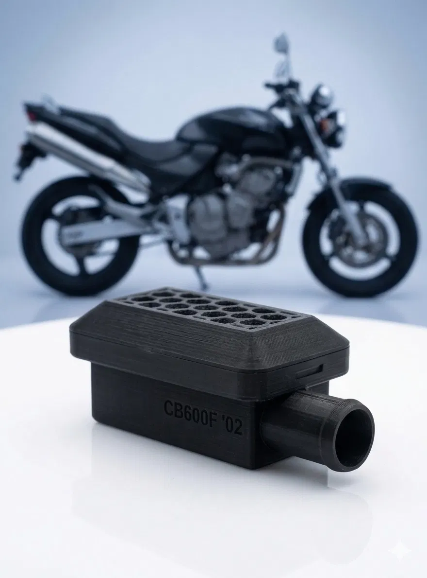 Bộ vỏ lọc gió phụ in 3D thay thế cho Honda (17256-MT4-000). Thiết kế gồm hai phần với khớp nối nhanh, giải pháp lý tưởng cho các dòng xe như CB600F Hornet. Khuyến khích in bằng nhựa chịu nhiệt như PETG hoặc ABS để đảm bảo độ bền khi hoạt động gần động cơ.