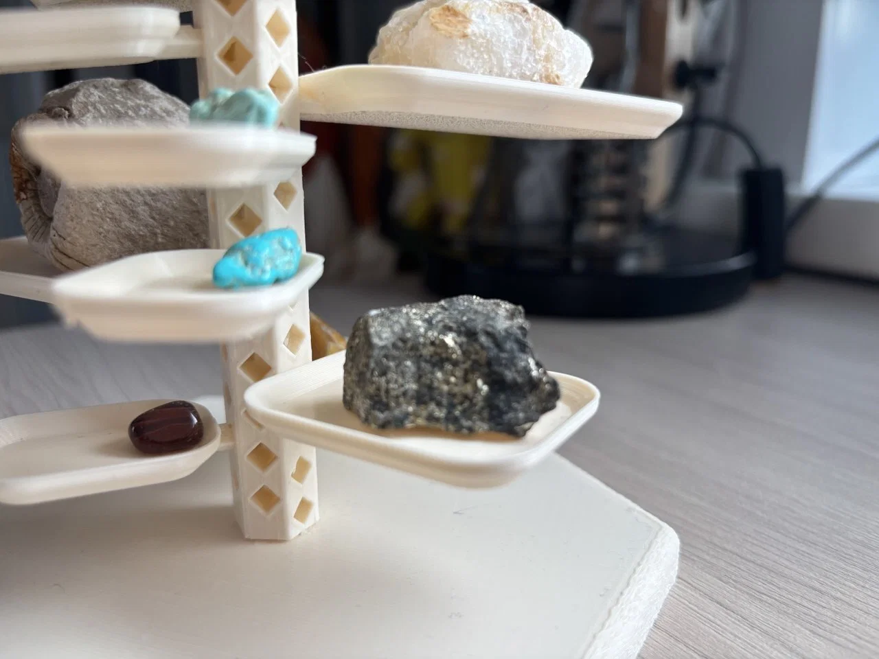 Bạn đang tìm kiếm một cách trưng bày bộ sưu tập đá quý, khoáng vật hoặc các món trang sức nhỏ một cách ấn tượng và ngăn nắp? Mô hình kệ trưng bày 3D này mang đến giải pháp linh hoạt với thiết kế dạng cột đứng kết hợp cùng các khay đựng có thể thay đổi vị trí tùy ý. Bạn hoàn toàn có thể tự điều chỉnh số lượng khay cũng như khoảng cách giữa chúng để phù hợp với kích thước của từng món đồ. Với kết cấu đế vững chãi và thiết kế thông minh, sản phẩm không chỉ giúp tối ưu hóa không gian lưu trữ trên bàn làm việc mà còn trở thành vật trang trí vô cùng tinh tế. Đây là dự án in 3D lý tưởng cho những người đam mê sự ngăn nắp, giúp bạn dễ dàng cá nhân hóa góc trưng bày theo phong cách riêng của mình một cách nhanh chóng và hiệu quả.