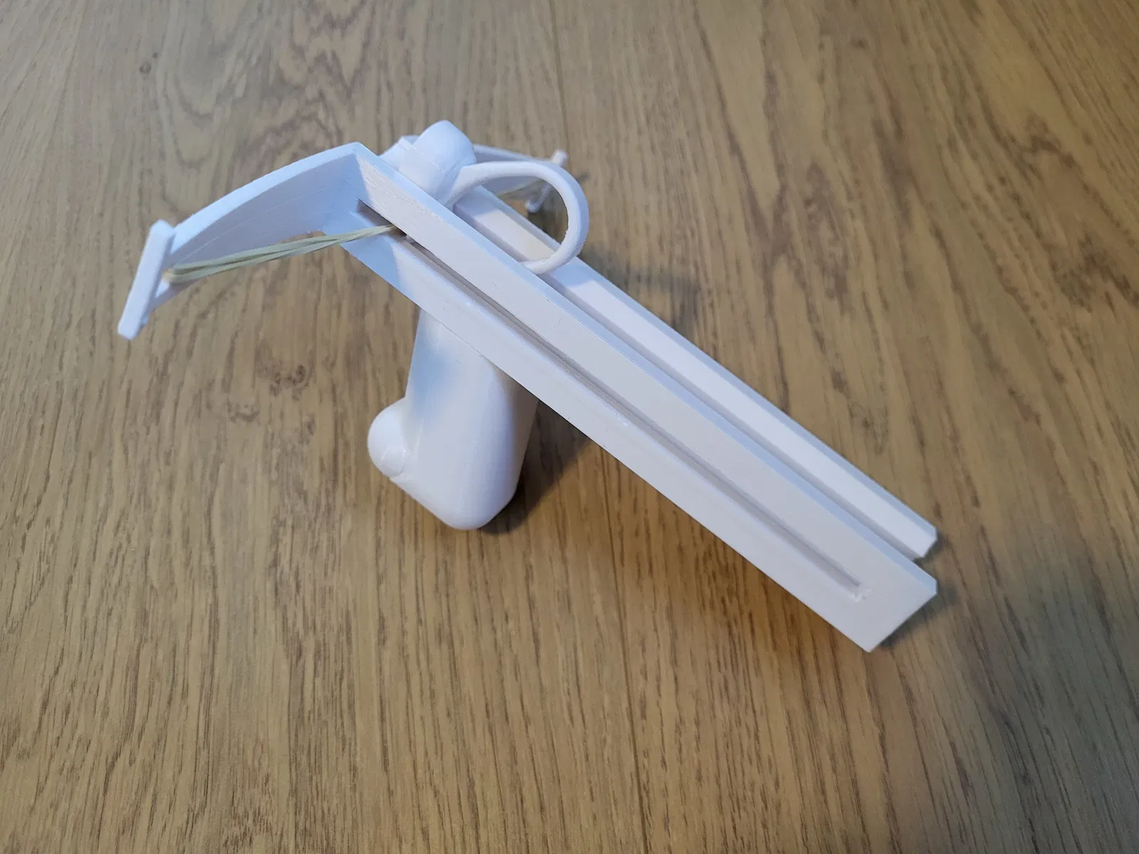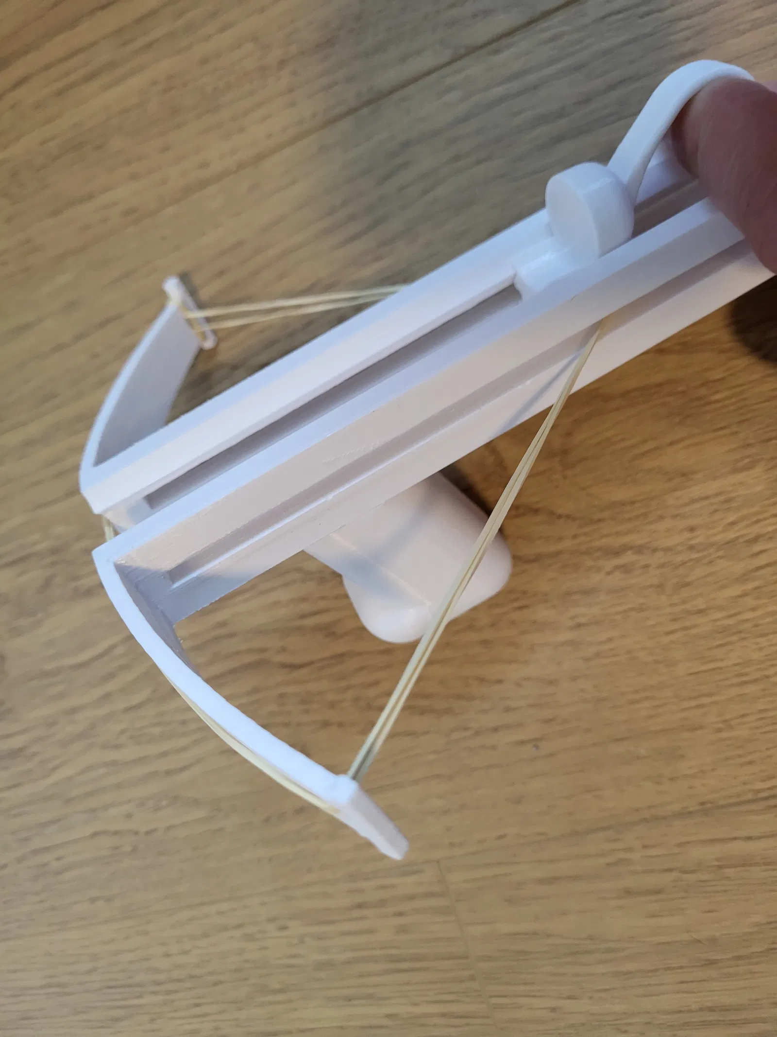 Một chiếc nỏ mini để bàn thú vị, dùng để bắn cầu giấy trong các trận chiến văn phòng hoặc gửi bánh thưởng cho thú cưng của bạn. Mô hình dễ in, lắp ráp nhanh và an toàn khi sử dụng.