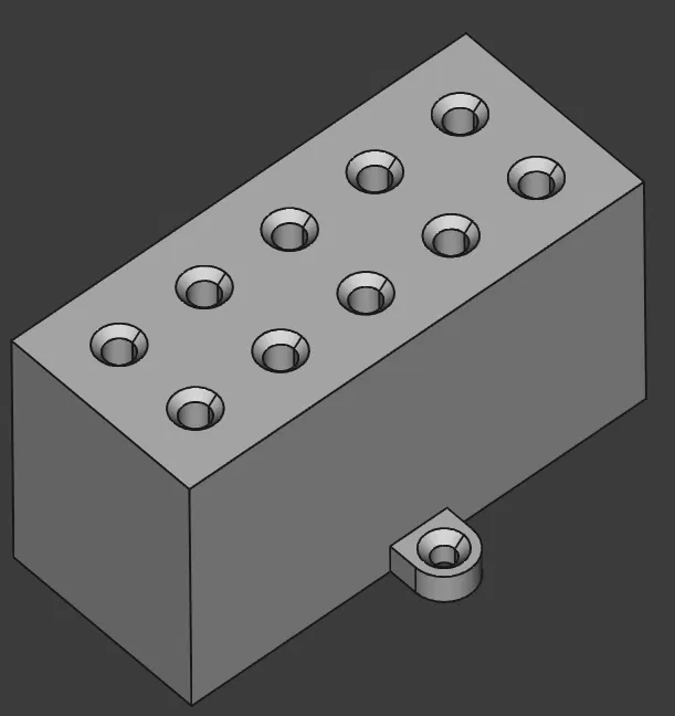 Sản phẩm có thiết kế hình khối chữ nhật vững chãi, các lỗ cắm được bố trí theo hàng lối rõ ràng, giúp anh em quan sát được toàn bộ các kích thước mũi hàn mình đang có. Đặc biệt, phần đế còn được tích hợp thêm một tai nhỏ có lỗ để bắt vít, cho phép anh em cố định chặt chẽ vào bàn làm việc hoặc bảng kỹ thuật, tránh trường hợp vô tình làm rơi đế khi đang thao tác. Với cấu trúc đơn giản nhưng hiệu quả, mẫu này cực kỳ phù hợp để in 3D nhanh chóng bằng máy cá nhân.