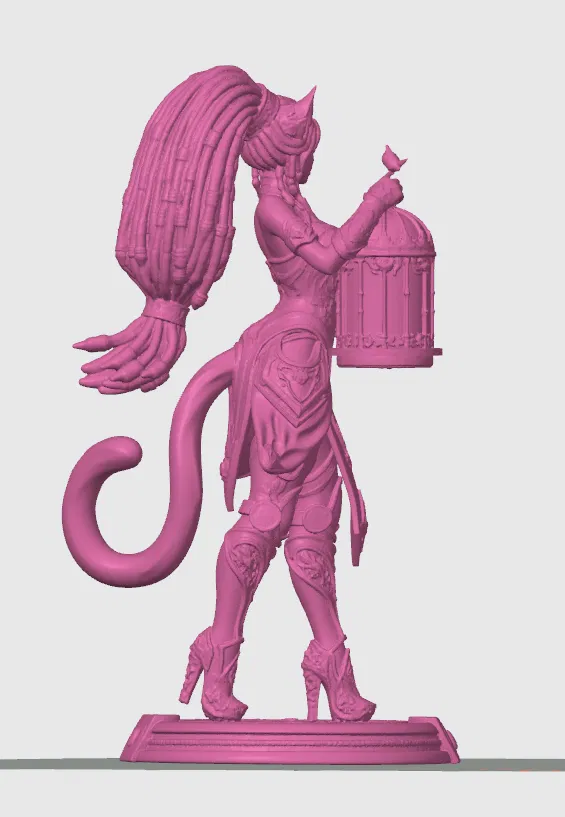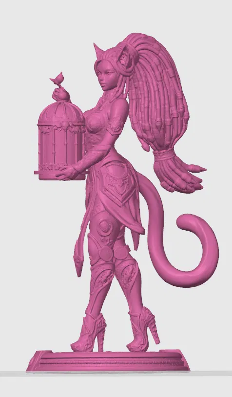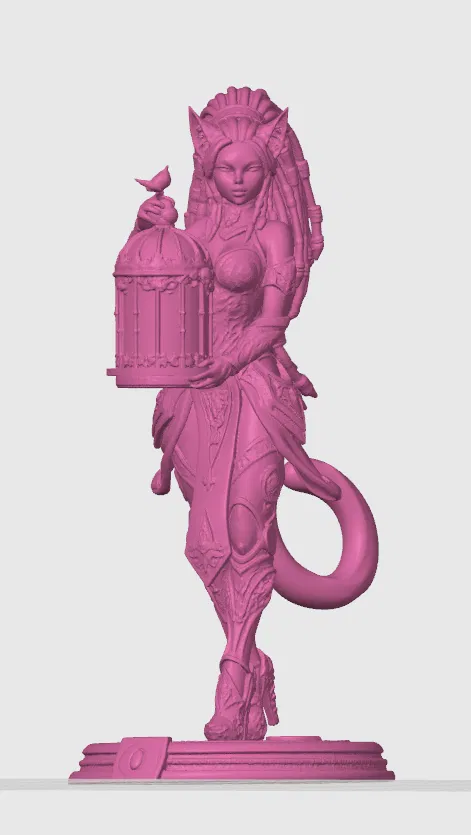 Mô hình cô nàng mèo Ba Tư cao 20cm cực kỳ chi tiết, kết hợp phong cách cybernetic và giả tưởng. Thiết kế tối ưu cho in FDM với giáp trụ tinh xảo và phụ kiện lồng chim độc đáo, mang lại sản phẩm in 3D sắc nét và đầy tính nghệ thuật.