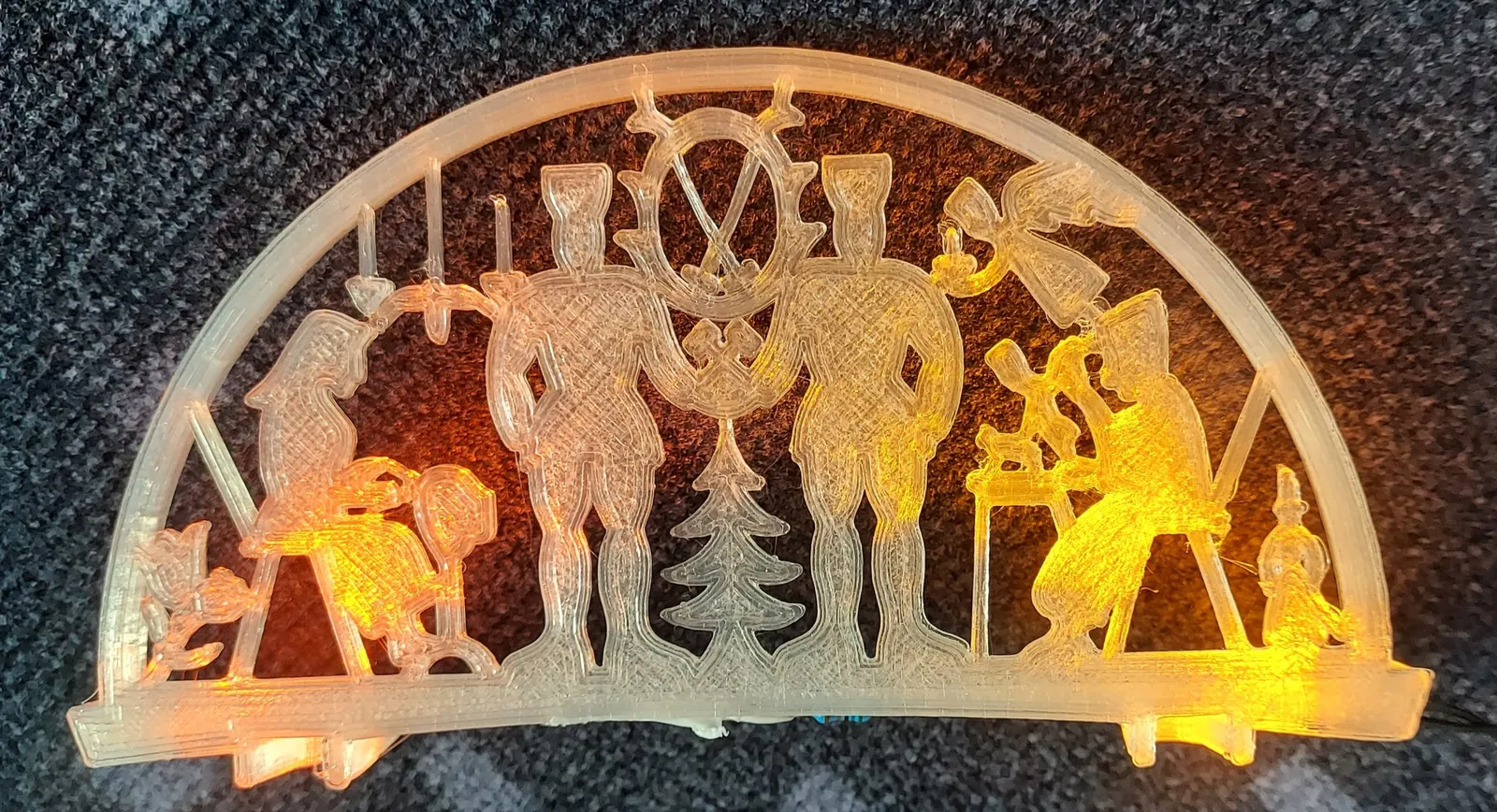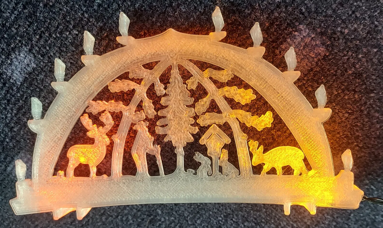 Bergmann, Seiffen và một bức tranh rừng như một tấm súng xoa. Với chân để lắp ráp đèn LED 3 mm.