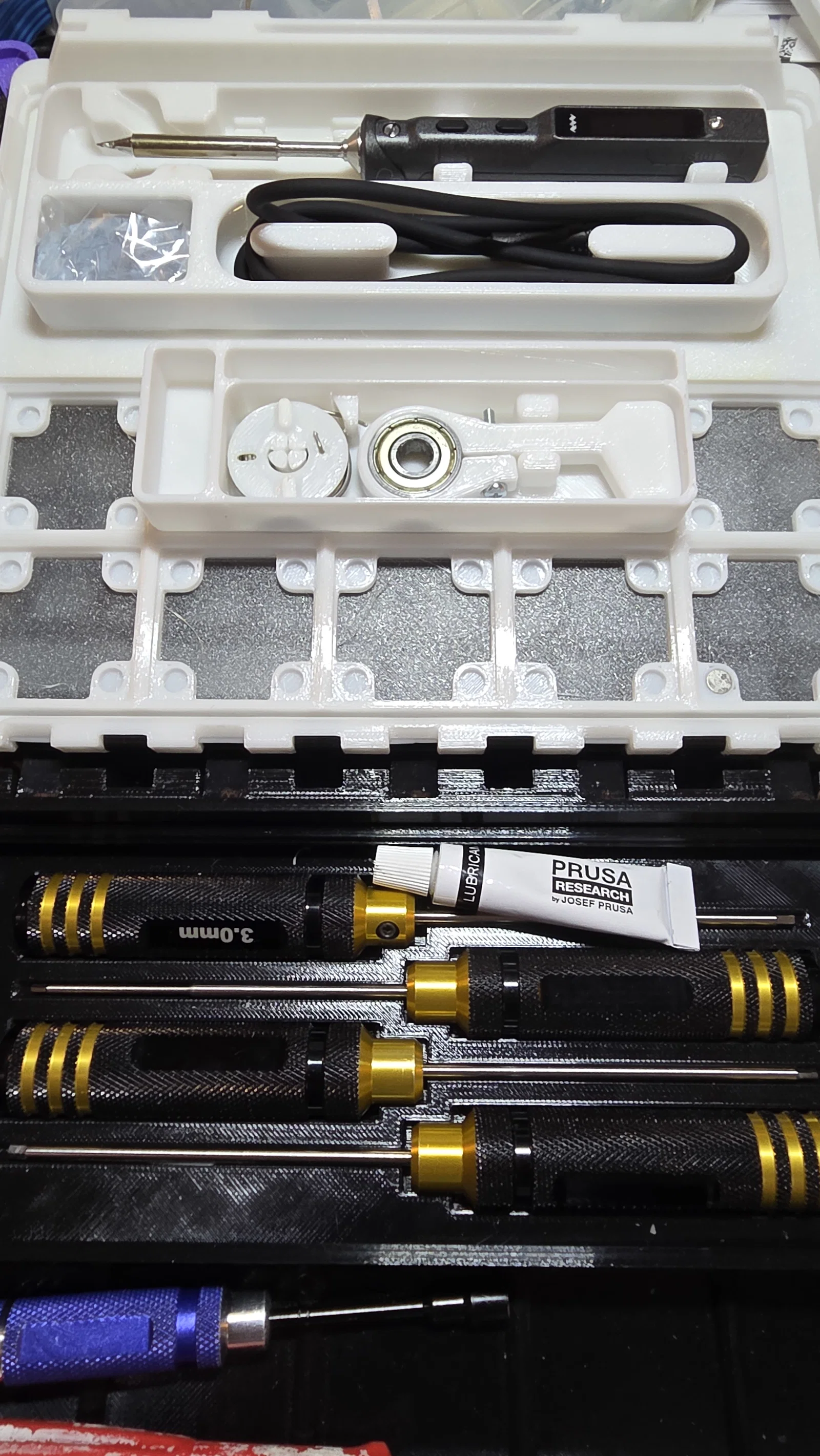 Đây là bản remix của giá đỡ mỏ hàn TS100/TS101, được bổ sung thêm đế Gridfinity tích hợp lỗ nam châm. Thiết kế này cực kỳ tiện lợi để gắn vào nắp của Modern Gridfinity Case, giúp bạn tối ưu hóa không gian bàn làm việc một cách ngăn nắp và chuyên nghiệp.