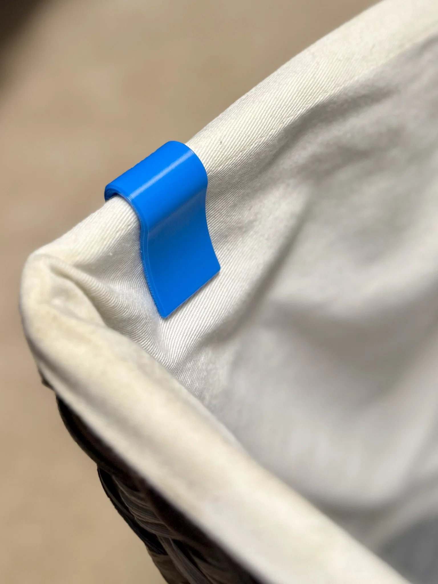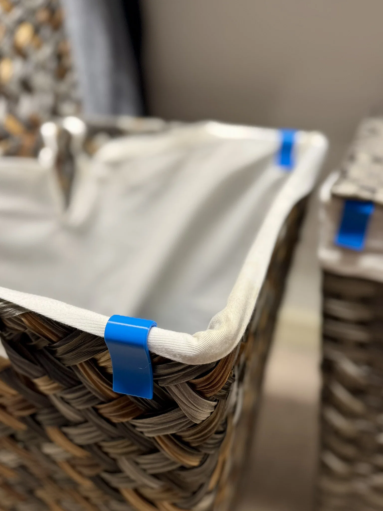 Giải pháp kẹp giữ lớp lót vải cho giỏ đựng đồ giúp ngăn tình trạng trượt, sụp lớp lót. Thiết kế thông minh, dễ tháo lắp, không cần support, in bằng PLA/PETG.