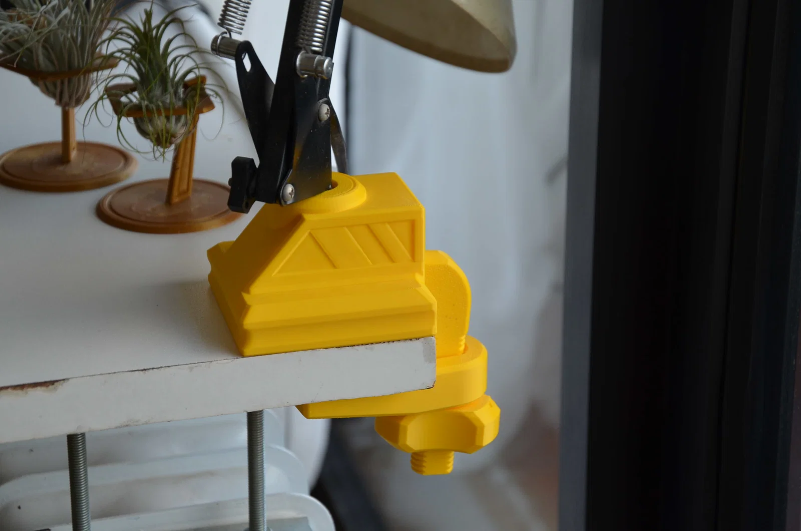 Mẫu giá kẹp đèn bàn chắc chắn và dễ in, dùng để thay thế chân đế cho các loại đèn bàn có khớp nối. Sản phẩm có đi kèm file tùy chỉnh để lắp vừa với nhiều kích thước đèn khác nhau mà không cần thêm phụ kiện bên ngoài.