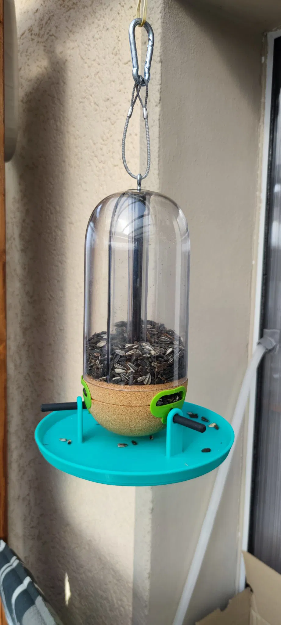 Vì thức ăn đã rơi ra khi lật ngược, tôi đã quyết định sử dụng một đĩa hứng được in 3D, với hy vọng rằng không phải tất cả thức ăn đều rơi xuống ban công khi khách của chúng tôi đến :)