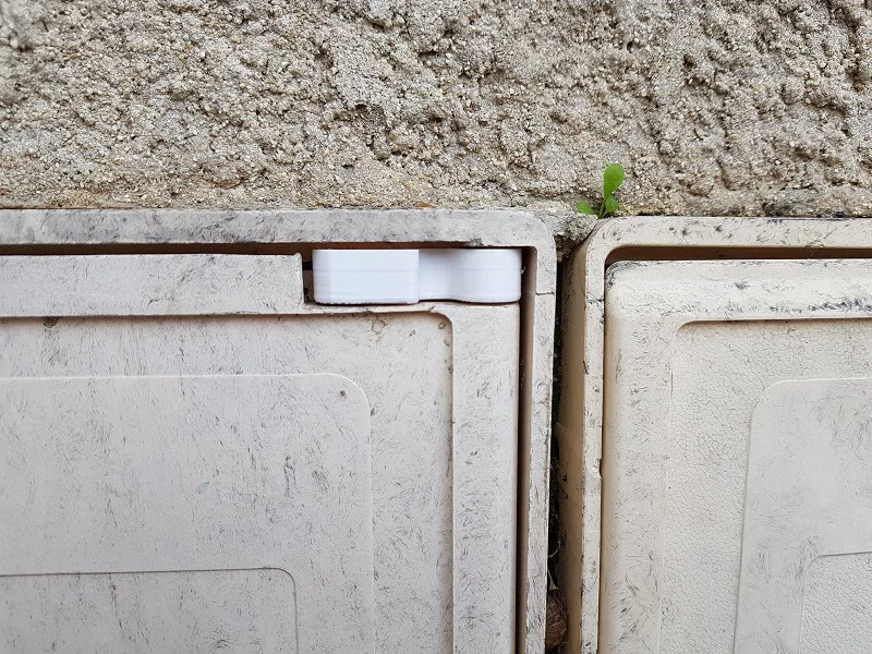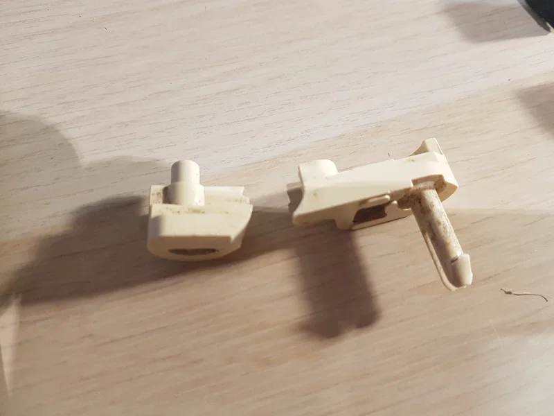 Ngoài ổ khóa (Xem tại ), một trong những bản lề cửa tủ điện EDF của tôi bị gãy khiến cửa không đóng lại được. Thế là mình bắt tay vào thiết kế và in 3D bản lề phía trên. Bản lề phía dưới vẫn còn nguyên nên mình không thay thế.