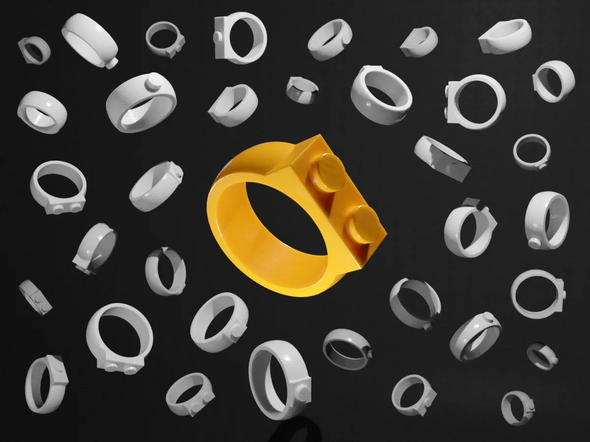 Bộ sưu tập gồm 70 mẫu nhẫn với 7 kiểu dáng khác nhau và 10 kích cỡ, cho phép bạn thỏa sức sáng tạo và gắn thêm các chi tiết trang trí từ hệ thống gạch lắp ráp yêu thích của mình.