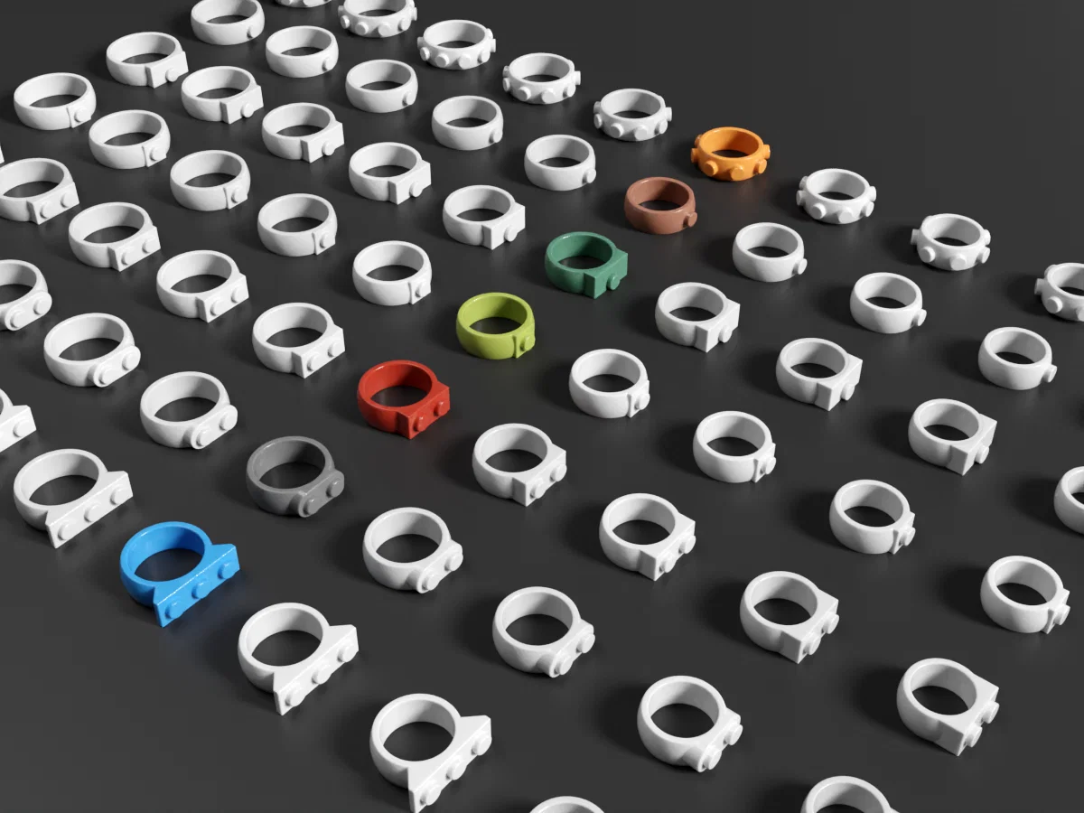 Mình vừa tạo thêm một bộ nhẫn với kích thước lớn hơn, đường kính trong từ 24 - 30 mm. The Bigger Brick Ring of Creativity Ban đầu mình chỉ định thiết kế và in một vài chiếc nhẫn cho các bé gắn thêm mấy miếng trang trí của hệ thống gạch lắp ráp, nhưng cuối cùng lại cho ra đời khá nhiều biến thể khác nhau để tặng bạn bè. Mình đã thiết kế sẵn 10 kích thước (đường kính trong từ 14–23 mm). Nếu bạn cần size khác, cứ nhắn mình để mình chỉnh lại nhé. Đã test trên máy MINI+, mình khuyến khích dùng độ cao lớp in 0.1 mm. Chỉ cần hỗ trợ (supports) cho phần các mấu lắp ghép thôi. Lưu ý khi chọn size cho trẻ em để đảm bảo ngón tay các bé không bị kẹt nhé.