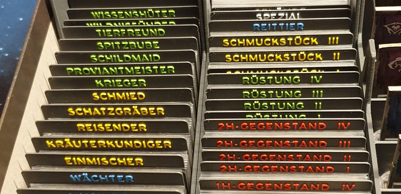 Đây là các ngăn thẻ cho insert/organizer cho trò chơi board game Chúa tể những chiếc nhẫn: Hành trình ở Trung Đất.
