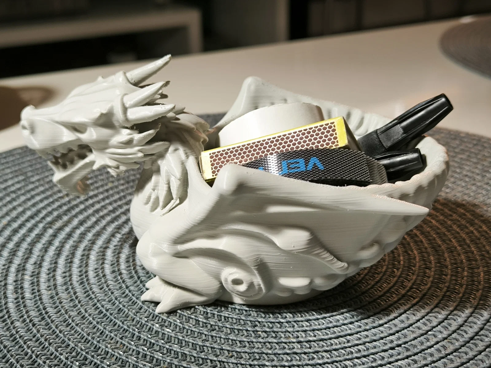 Bạn đang cần một vật dụng trang trí góc làm việc vừa đẹp mắt lại vừa tiện ích? Hãy thử trải nghiệm mẫu thiết kế Dragon bowl - chiếc khay hình rồng ấn tượng dành cho cộng đồng in 3D. Với tạo hình chú rồng mạnh mẽ, mô hình này cung cấp không gian chứa đồ lý tưởng cho các vật dụng nhỏ xinh như keo dán, băng keo hay văn phòng phẩm. Sản phẩm không chỉ giúp góc học tập, làm việc của bạn trở nên gọn gàng hơn mà còn là một điểm nhấn trang trí cực kỳ thu hút. Dễ dàng tùy chỉnh kích thước theo sở thích cá nhân, đây hứa hẹn sẽ là dự án in 3D thú vị và đầy cảm hứng cho bất kỳ ai yêu thích sự sáng tạo. Hãy tận dụng tối đa kỹ thuật in 3D để tạo nên tác phẩm hoàn hảo nhất cho riêng mình.