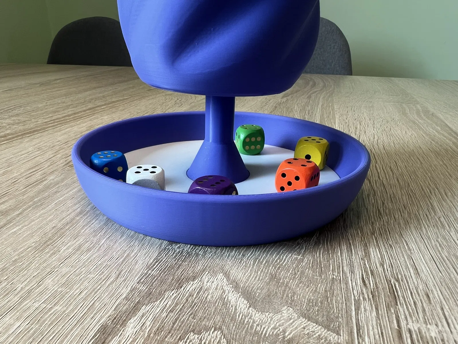 Để ngăn xúc xắc bay ra ngoài, hãy in phần lót bằng nhựa TPU hoặc cắt một vòng tròn (đường kính trong: 35 mm, đường kính ngoài: 130 mm) từ nút bần, nỉ hoặc bìa các-tông.