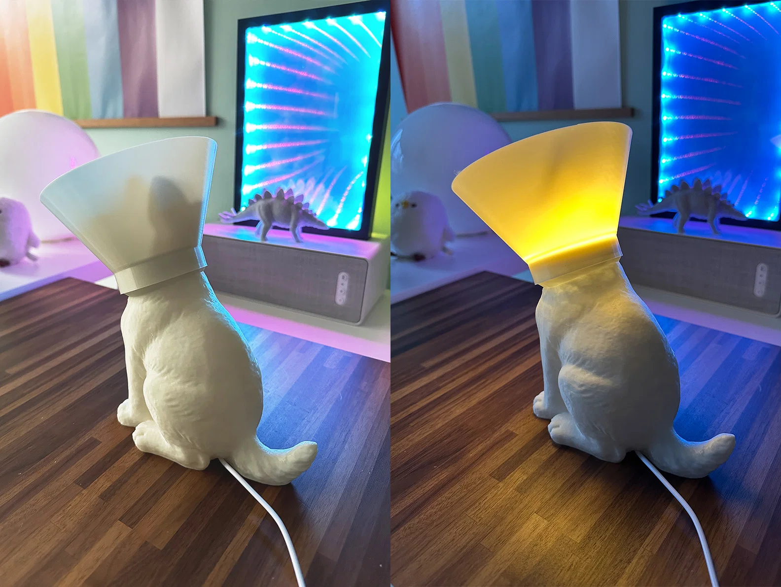 Mẫu đèn ngủ hình mèo đeo "loa chống liếm" (cone of shame), sử dụng bộ LED kit 001 của Bambu Lab: