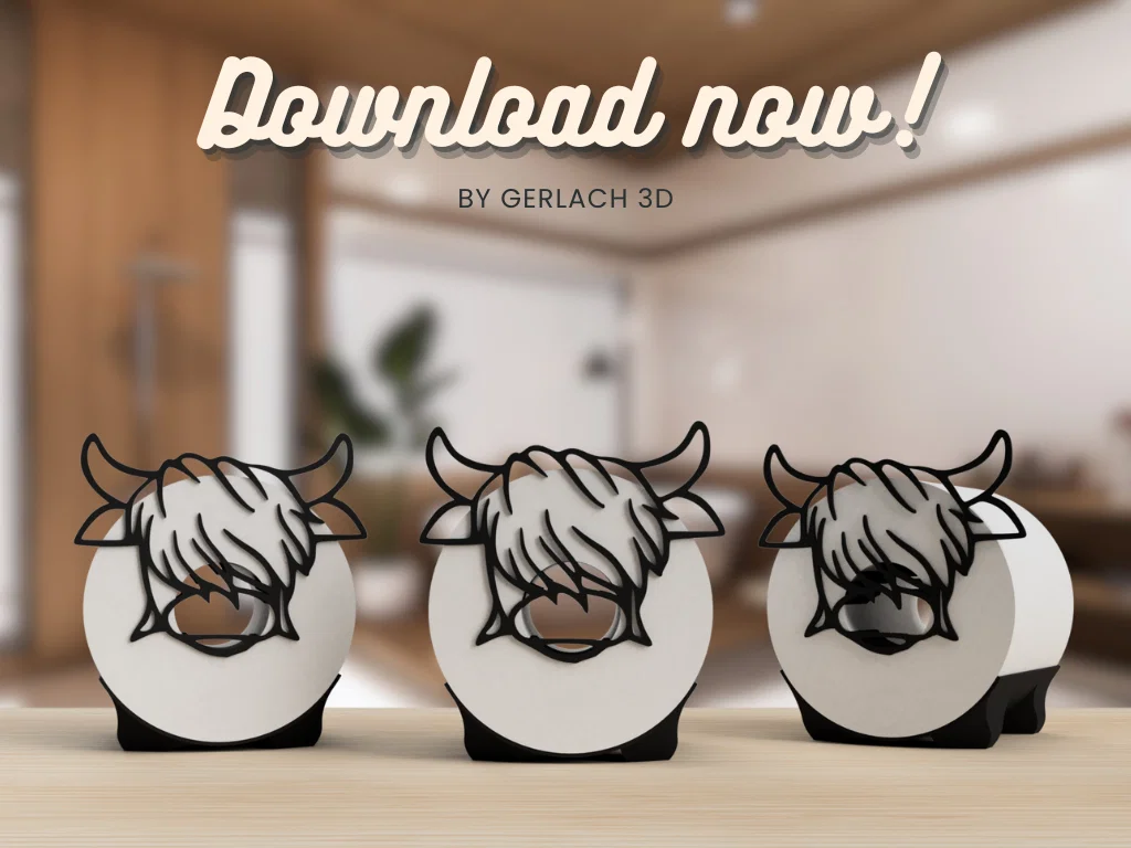 Thêm nét duyên dáng kiểu đồng quê vào phòng tắm với giá đỡ giấy vệ sinh bò Highland mini siêu đáng yêu! Thiết kế thông minh giúp biến cuộn giấy thành thân bò, dễ dàng in 3D và lắp ráp mà không cần support.