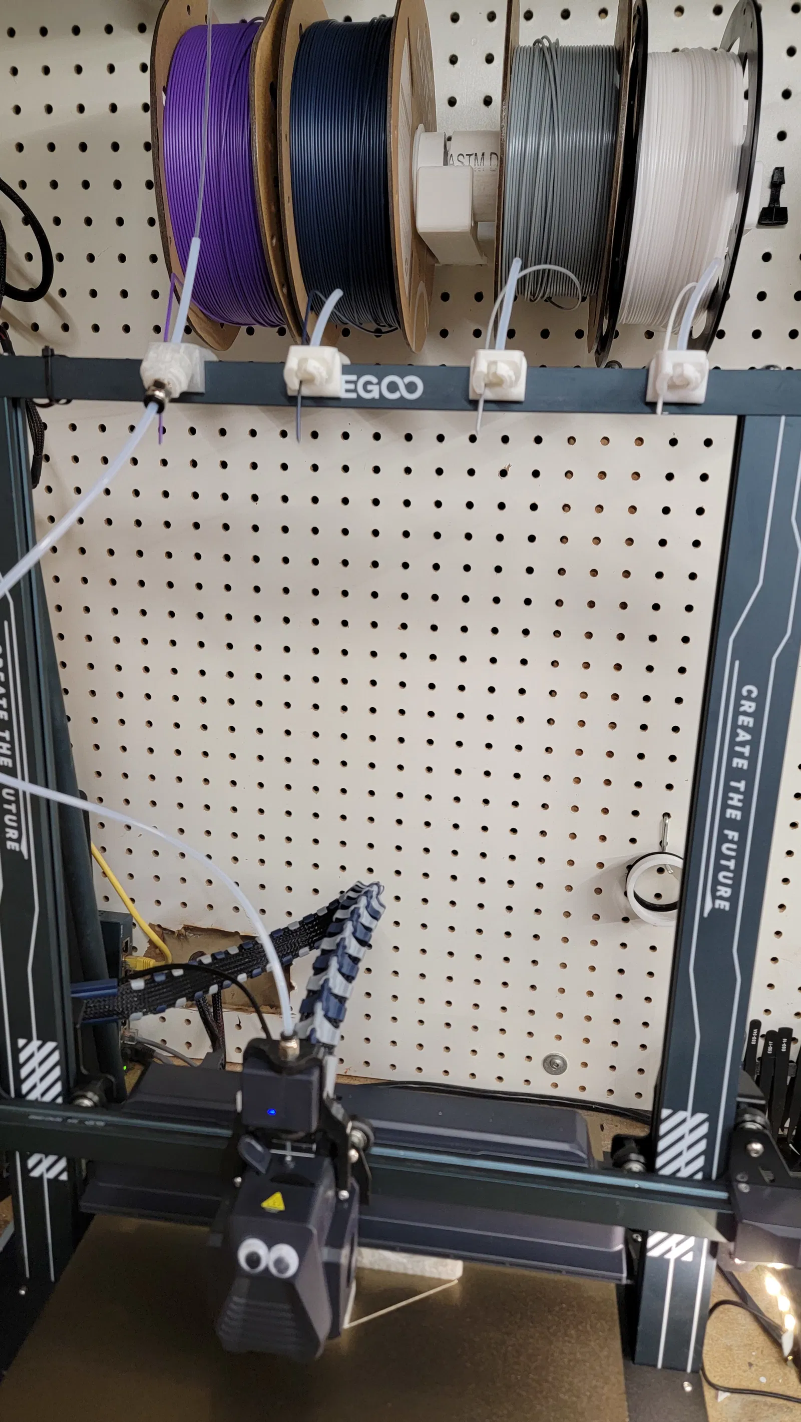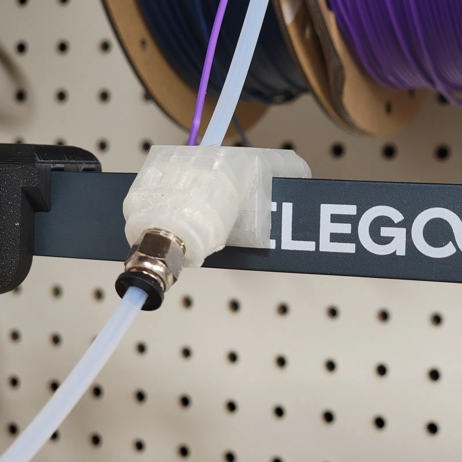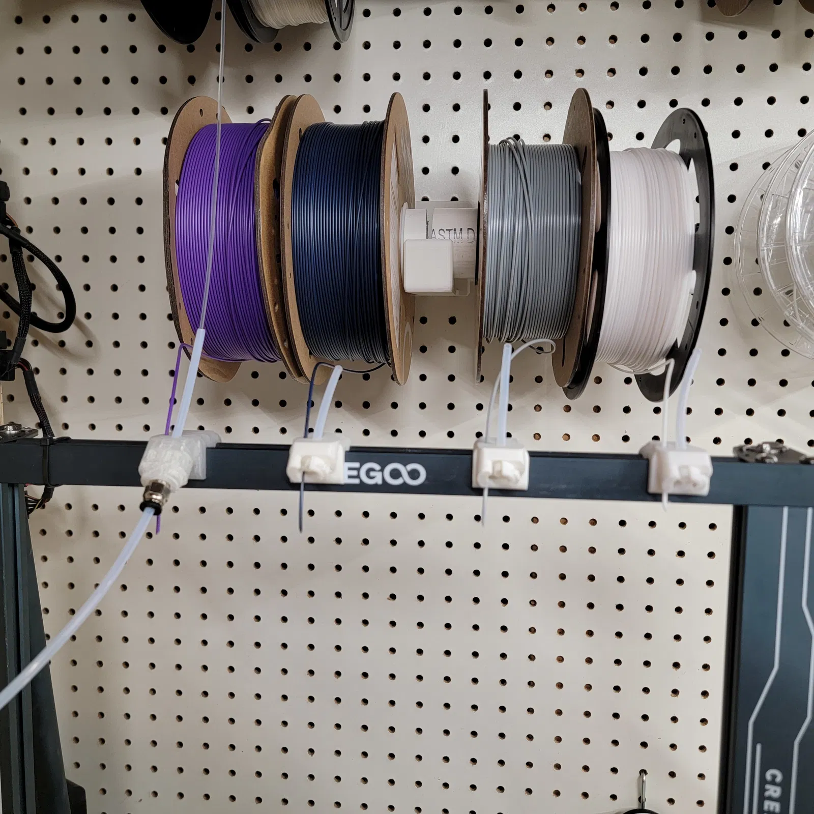 Vì mình treo các cuộn nhựa lên tường thay vì dùng giá đỡ zin của Elegoo, mình đã tìm cách để có thể linh hoạt sử dụng bất kỳ cuộn nhựa nào từ . Dự án này chính là kết quả của ý tưởng đó. Mình có chèn một đoạn ống Bowden ngắn vào phần kẹp để tăng độ linh hoạt, nhưng thực ra không bắt buộc phải có đâu (xem hình ảnh nhé).
