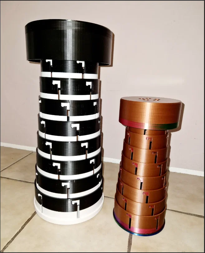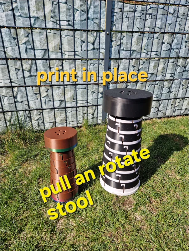 Ghế đôn in 3D không cần tháo lắp (print-in-place). Hiện có hai kích thước: 55cm và 37cm. Thiết kế của ghế được tối ưu để bạn chỉ cần dùng support cho loại ghế nhỏ, mình đã thêm sẵn phần support này rồi nha.