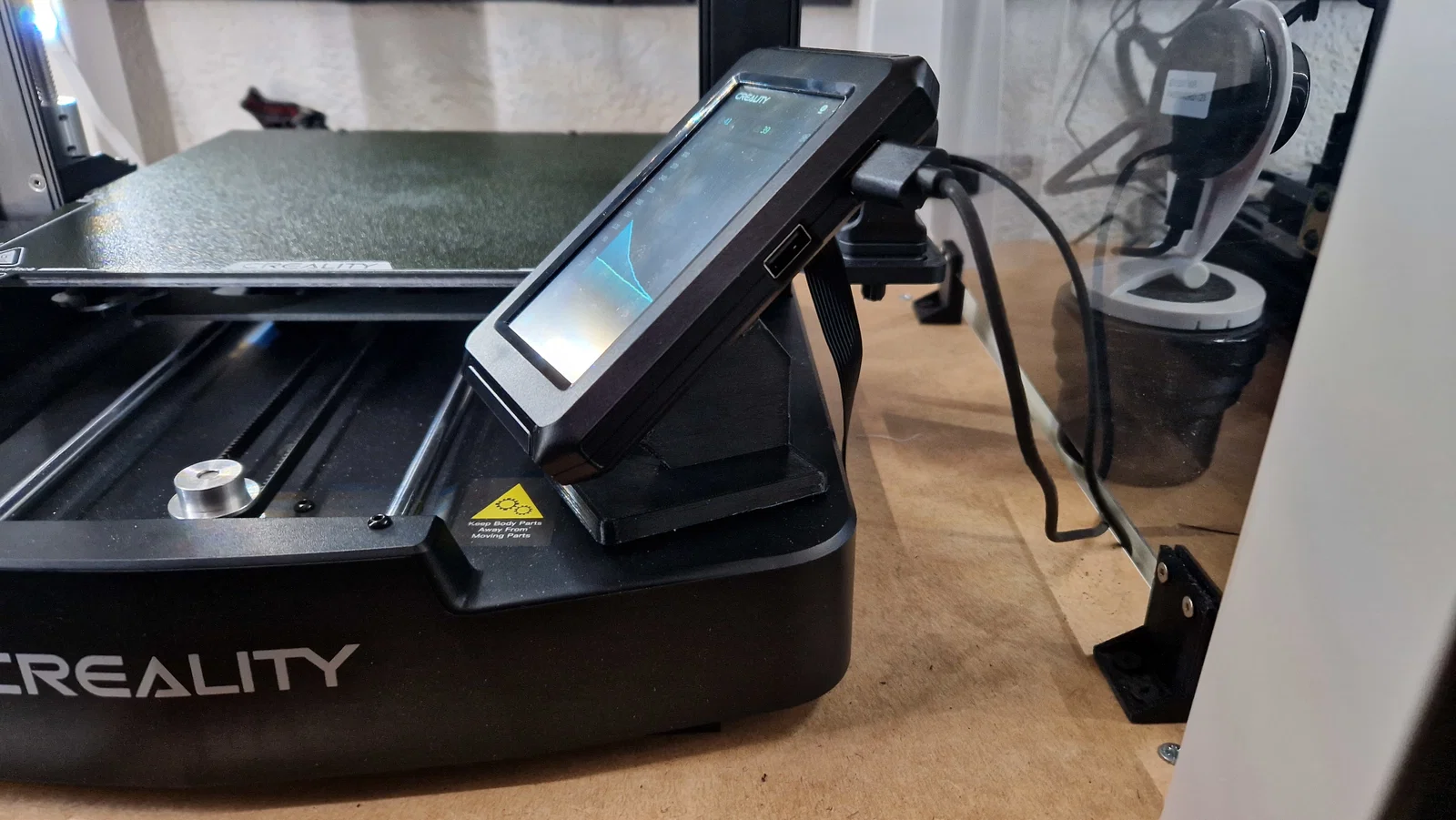 Cách khác: Cáp của Nebula Pad được kết nối với mainboard ở phía bên trái máy in, bạn có thể tận dụng thêm khoảng 30cm dây bằng cách dẫn nó ra phía bên trái máy in. Bạn chỉ cần khoét một lỗ nhỏ trên tấm đế (đừng quên mài nhẵn cạnh để tránh làm hỏng dây cáp).