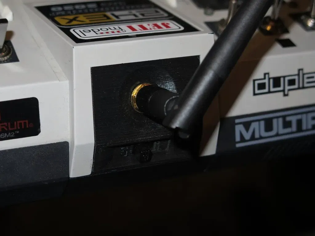 Cổng anten cho bộ phát R/C Multiplex mc2020/mc2010, để thay thế cổng anten "kéo dài" nguyên bản. Chỉ cần gắn vào vỏ bộ phát thay cho cái cũ.
