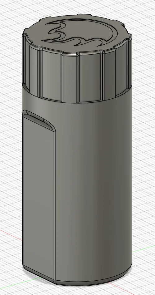Mẫu Hộp đựng diêm chống bão có vị trí dán giấy nhám và nắp vặn được thiết kế chuyên dụng để bảo quản các loại diêm chống bão, phù hợp với diêm có chiều dài khoảng 70mm. Hộp có chiều rộng 34mm, chiều cao bên trong 75mm và chiều cao bên ngoài 77mm. Thiết kế nắp vặn giúp tạo độ kín khít, chống chịu thời tiết hiệu quả, giữ cho diêm luôn khô ráo và sẵn sàng sử dụng. Sản phẩm còn có một vị trí tích hợp để dán giấy nhám, giúp bạn quẹt diêm dễ dàng khi cần thiết. Trên đỉnh nắp có khắc họa tiết hình ngọn lửa tinh tế.