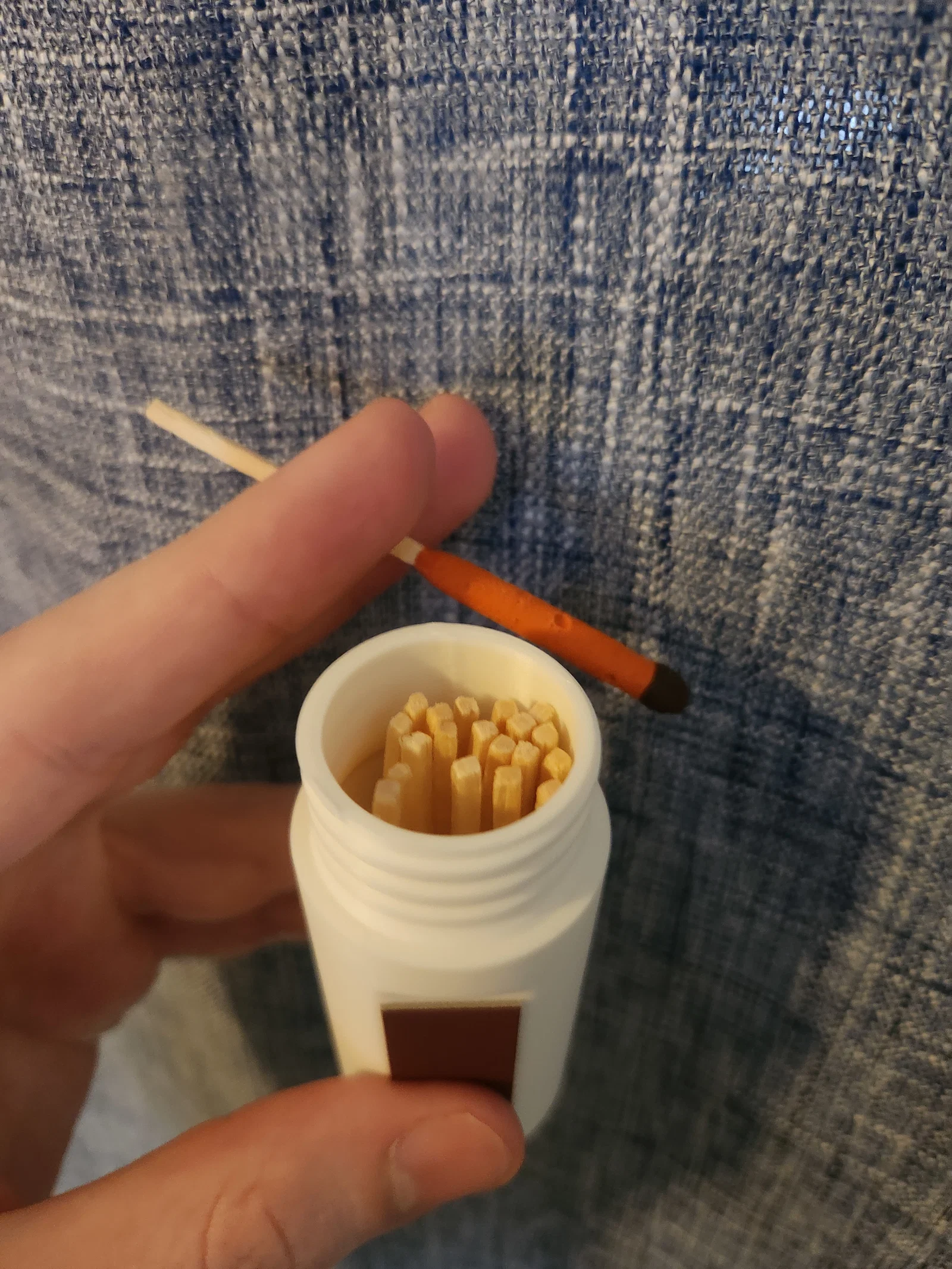 Vặn nắp vào và dán giấy nhám vào vị trí đã được tích hợp sẵn để tiện cho việc quẹt diêm.