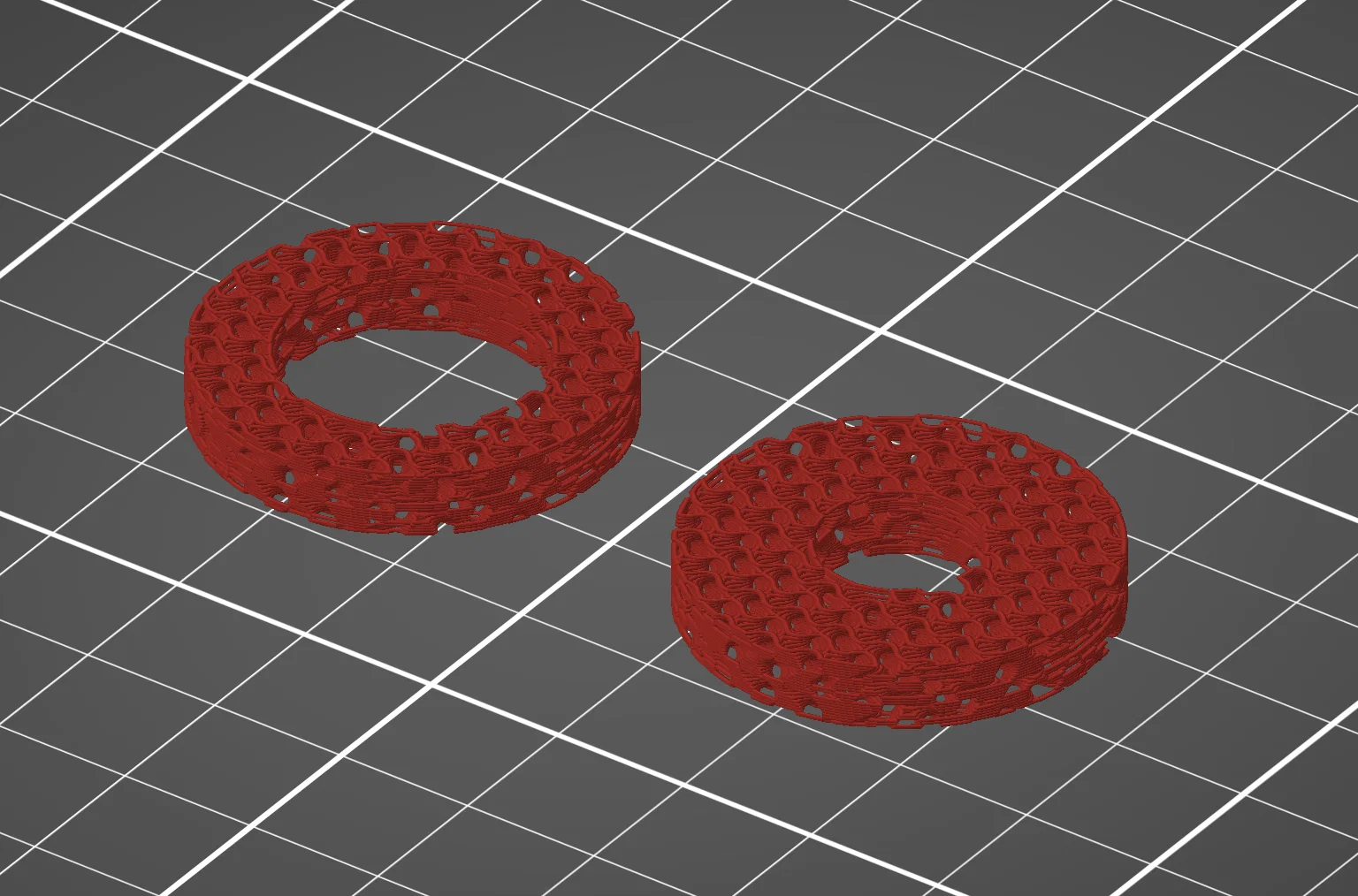 - Các đĩa nên được in không có lớp vỏ ngoài (outer perimeters) và không có lớp mặt trên/dưới (top and bottom layers), sử dụng Gyroid infill với mật độ 30%.