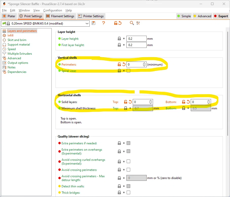 - Trực tiếp trong PrusaSlicer bằng cách dùng Add Shape để tạo đĩa và Add Negative Volume để đục lỗ. Như vậy bạn có thể dễ dàng điều chỉnh kích thước ("Sponge Silencer Baffle - Cylinders.3mf").