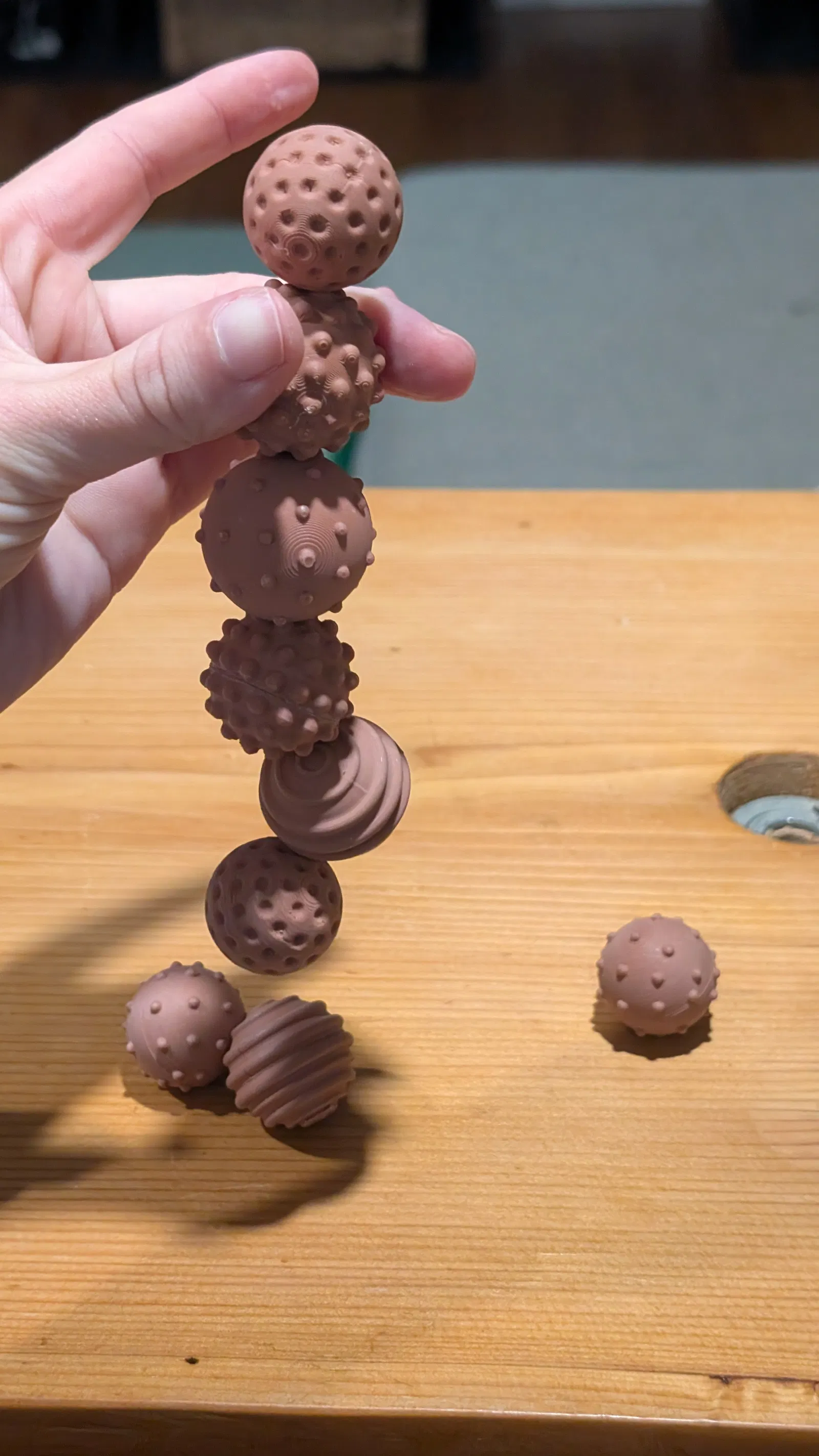 Bộ vỏ in 3D dành cho các viên bi nam châm fidget, tạo nên bề mặt kết cấu thỏa mãn cảm giác tay và giảm thiểu tiếng ồn khó chịu khi va chạm.