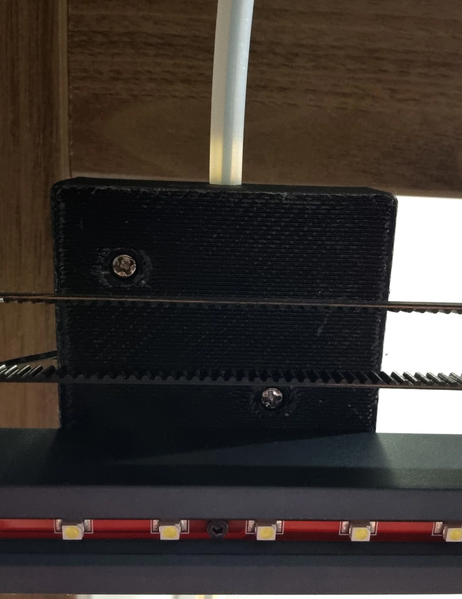 Sử dụng hai ốc vít có sẵn từ cảm biến sợi nhựa và hai bu lông lục giác của giá treo cuộn nhựa.