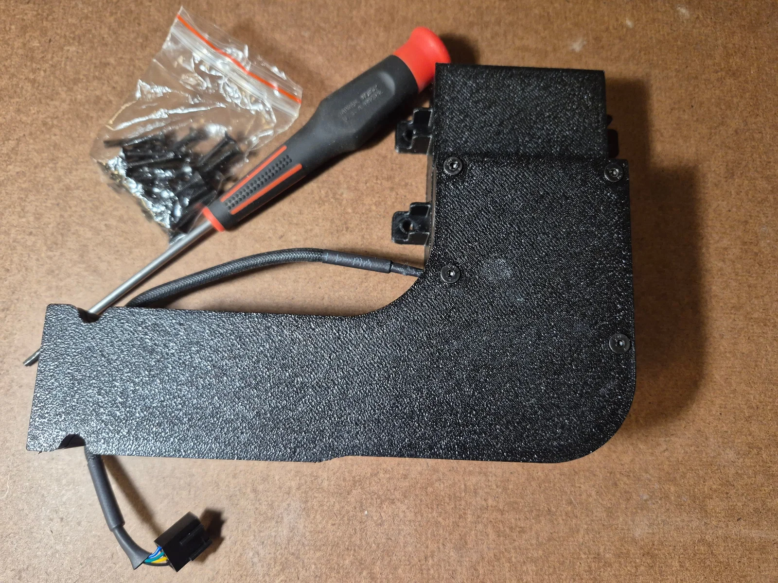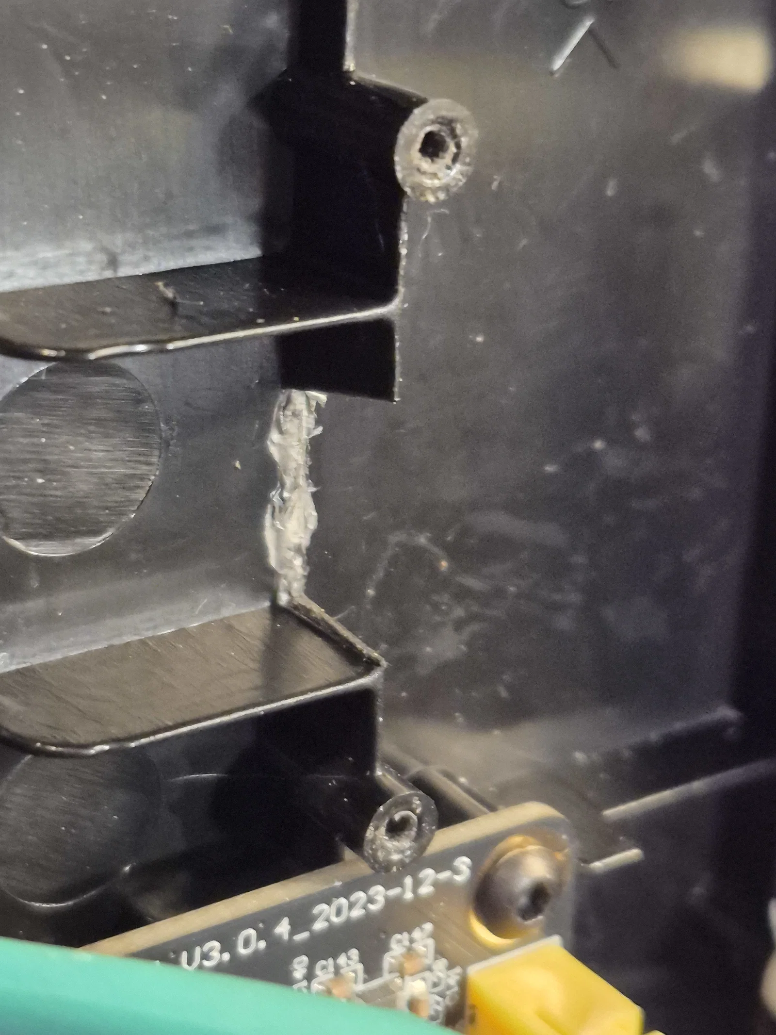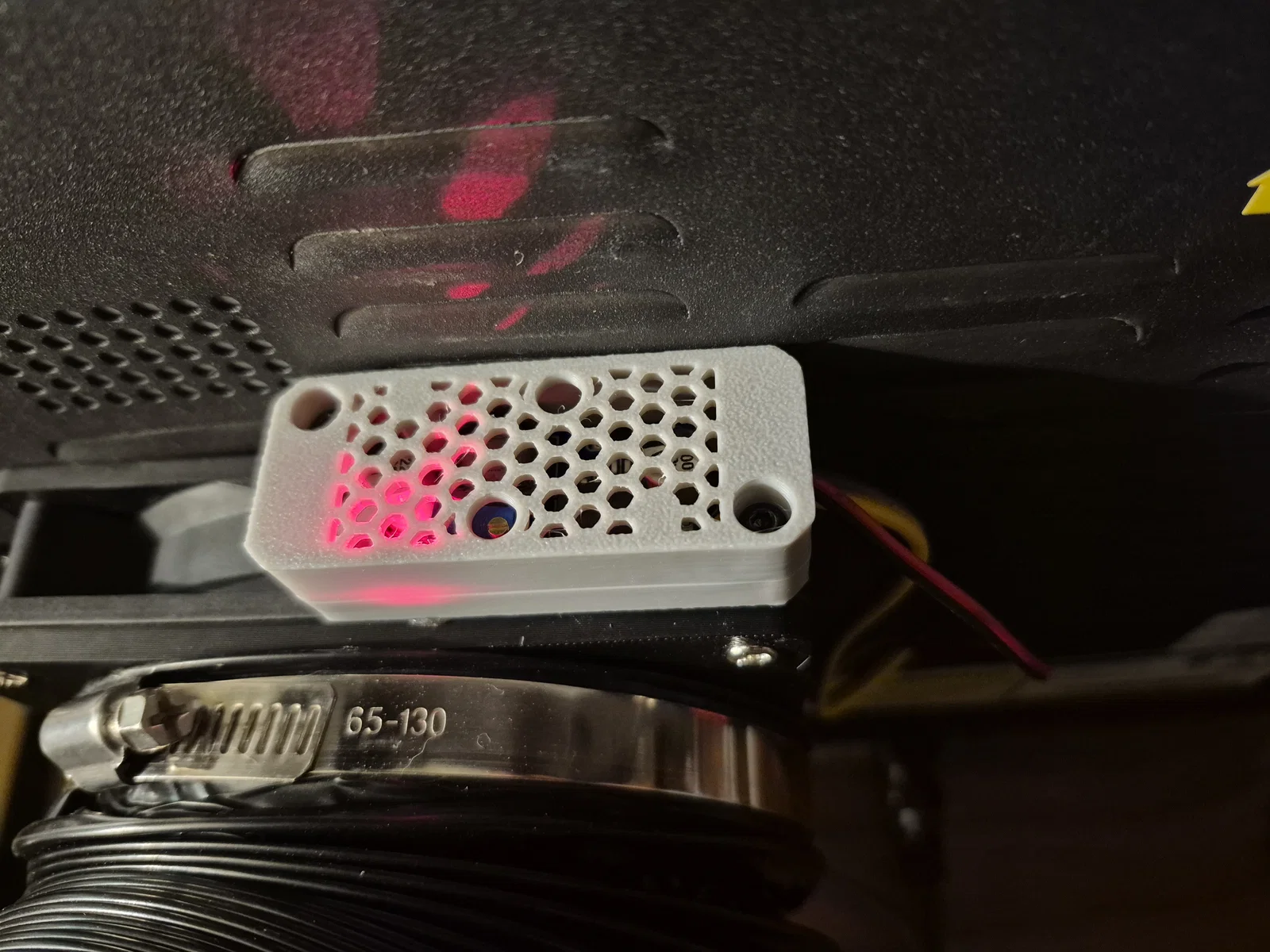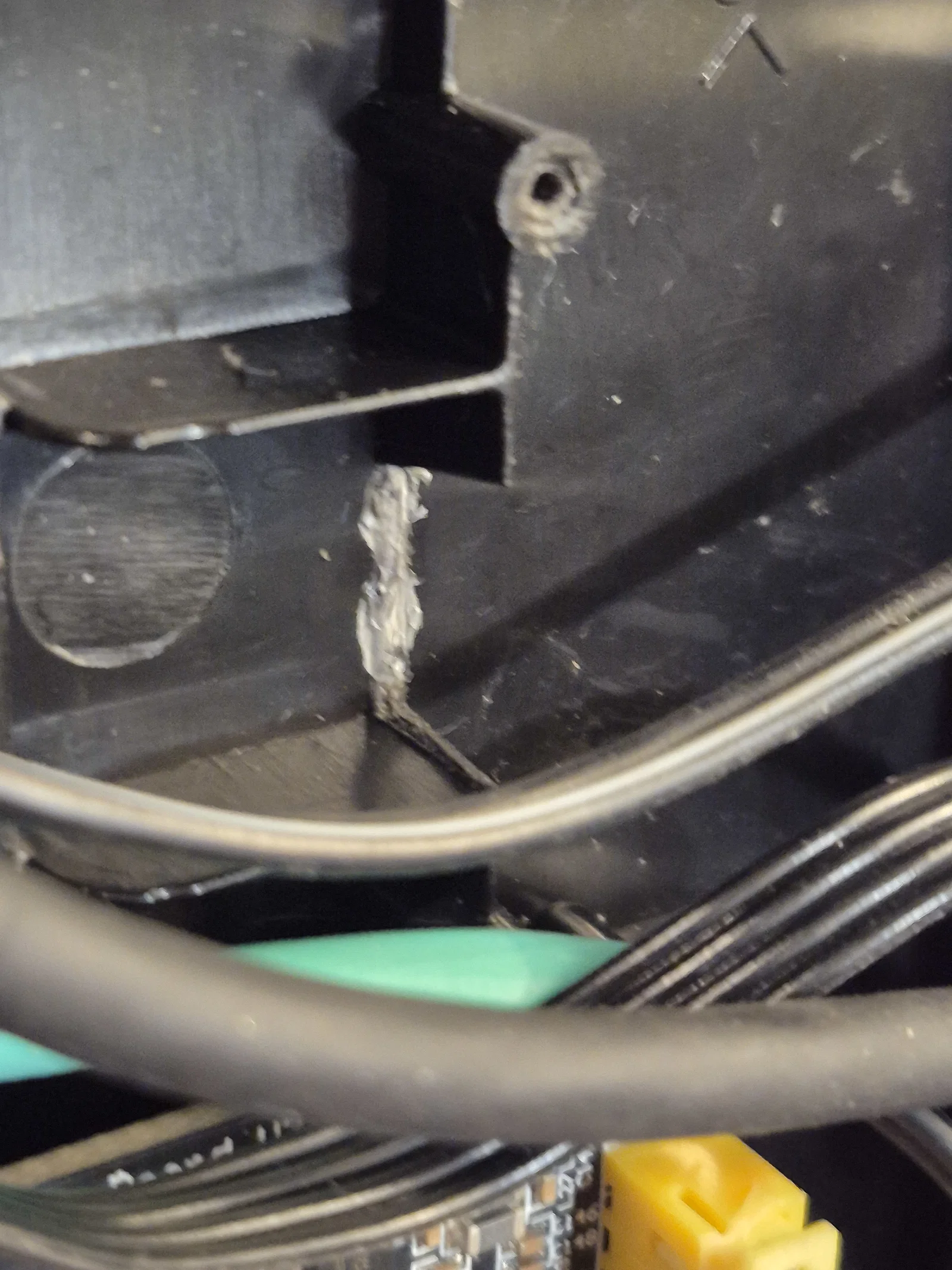 Khi lắp đặt, bạn cần đi lại dây để tránh bị vướng vào dây curoa hay quạt mainboard, nhất là dây extruder, cảm biến hết nhựa và trục Y. Cách tốt nhất mình tìm ra là cắt một phần gờ nhựa ABS dưới quạt mainboard để đi dây xuống dưới đó.